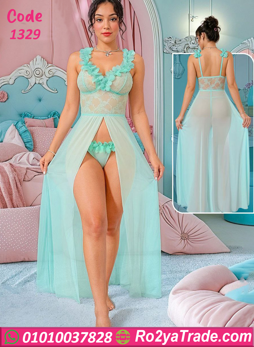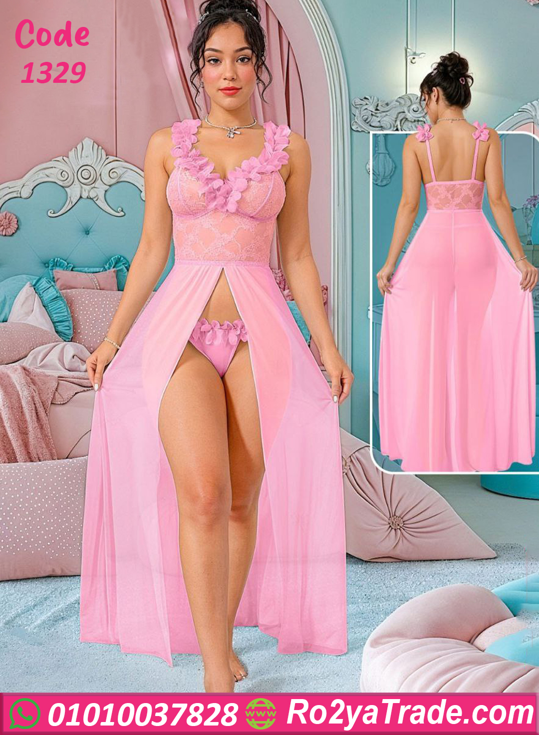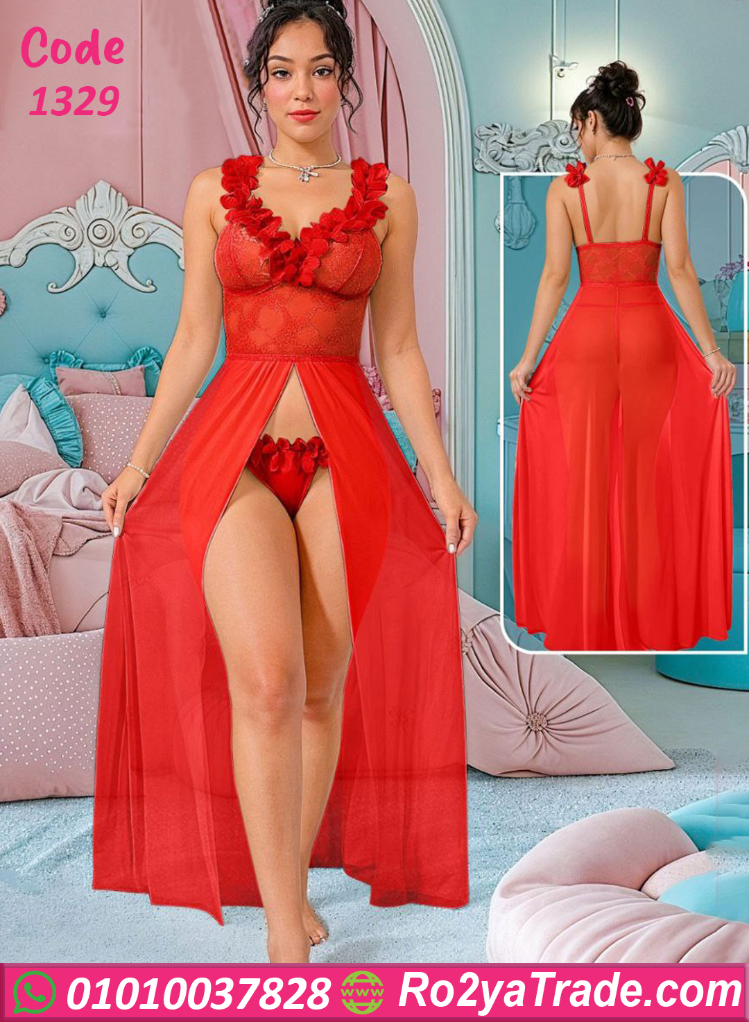 موديل فخم بفتحة أمامية جريئة وتصميم دانتيل ناعم على منطقة الصدر بيلفت النظر جدًا 💖