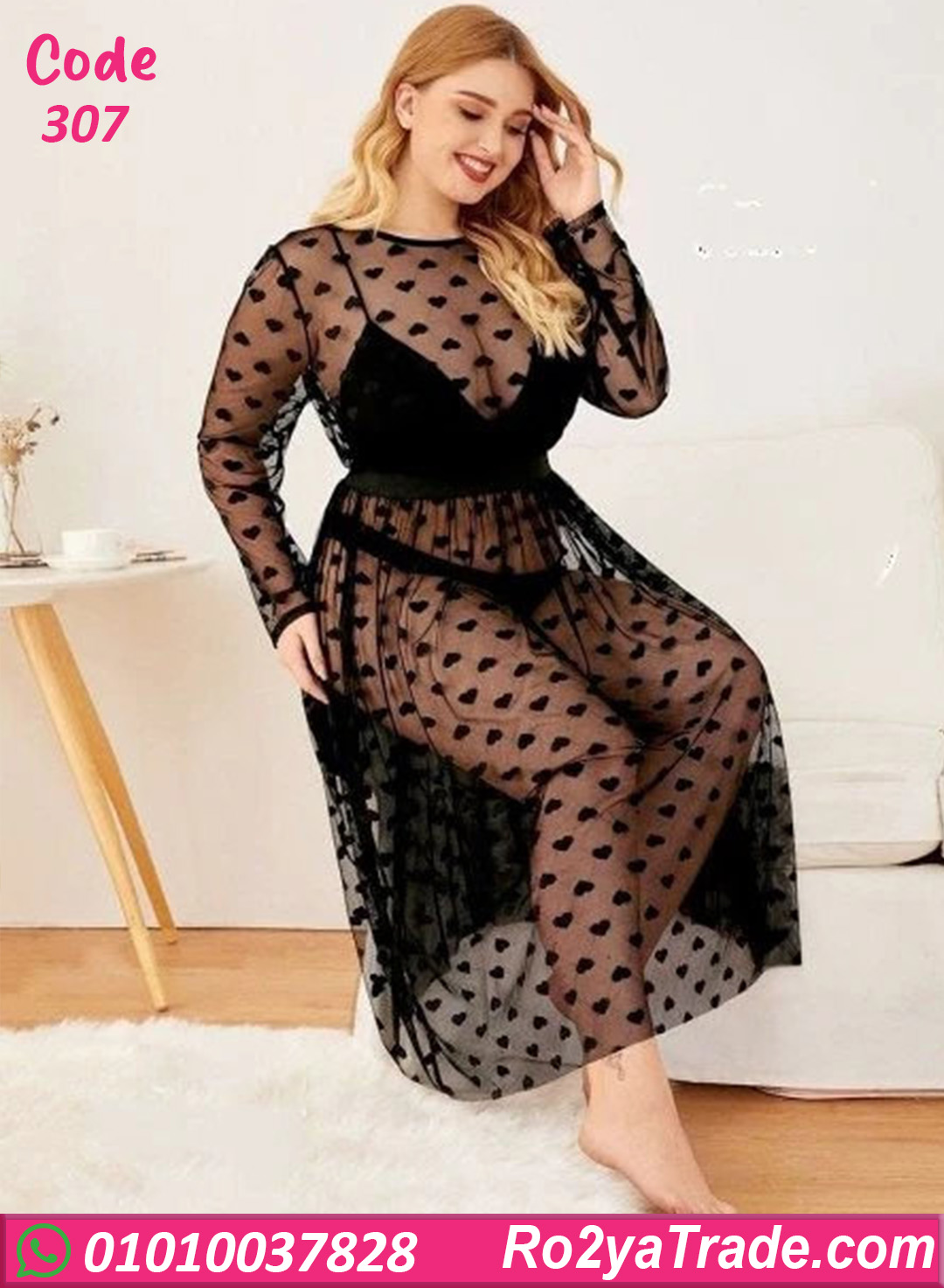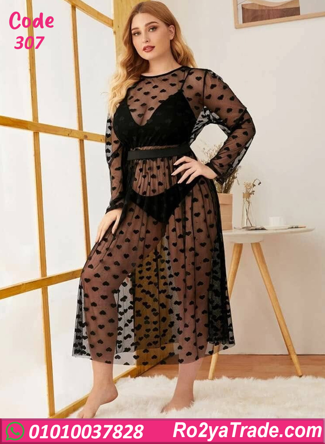 لانجري طويل مصنوع من خامة شبك خفيفة وناعمة على الجسم، تصميمه بطبقتين مع رسمة قلوب شيك بتدي لمسة أنوثة جذابة، مناسب للاستخدام في اللحظات الخاصة أو لإطلالة أنثوية مثيرة، مريح في اللبس وبيتحرك مع الجسم بسهولة، اختيار مثالي لكل ست بتحب الإحساس بالنعومة والجاذبية.