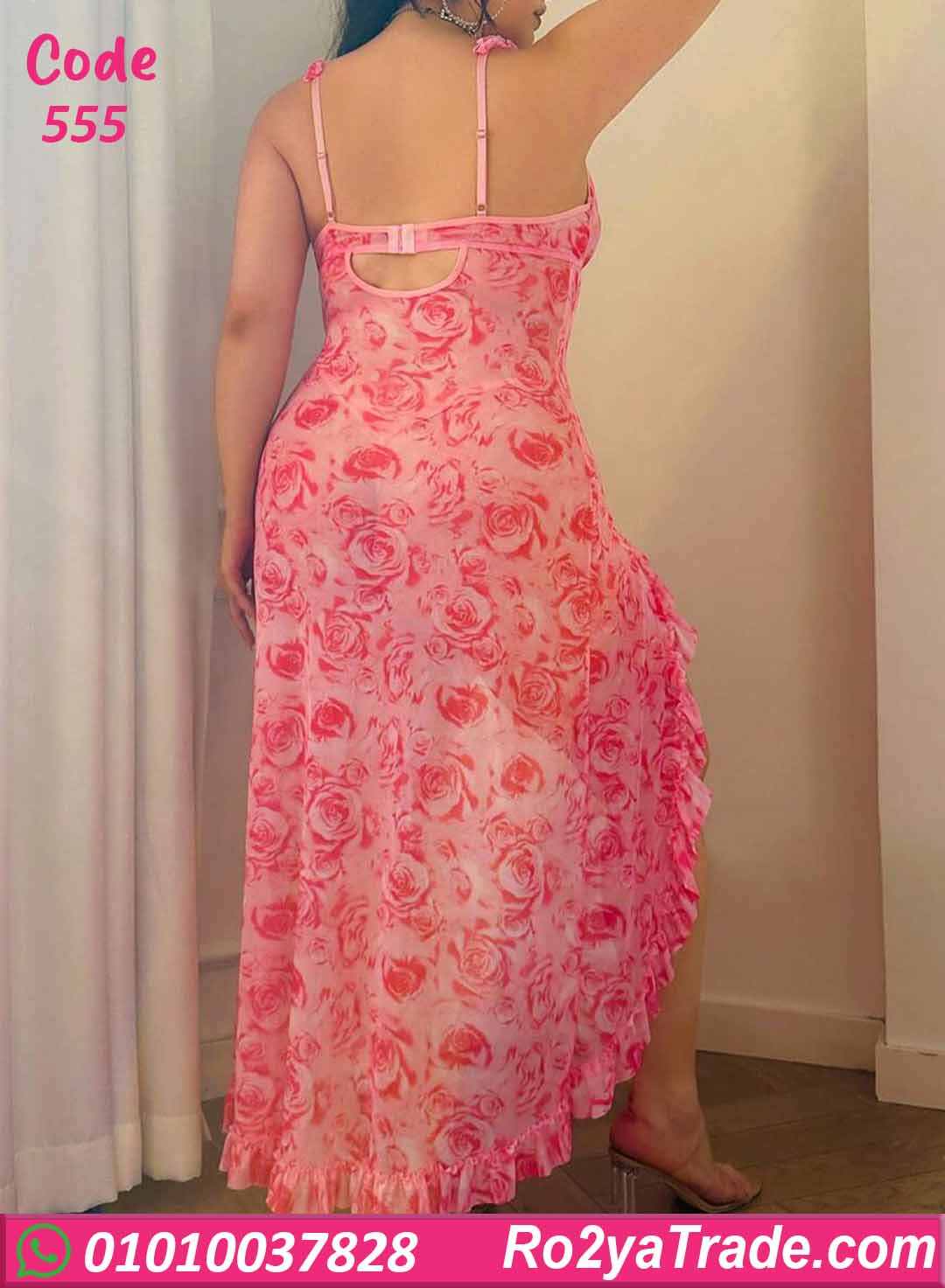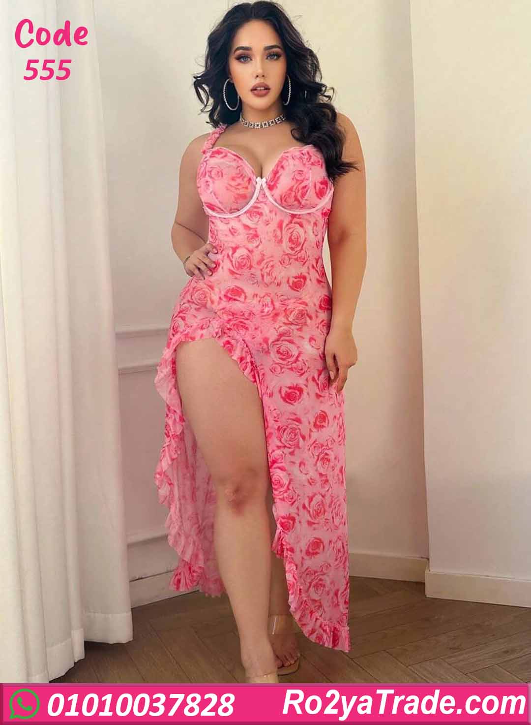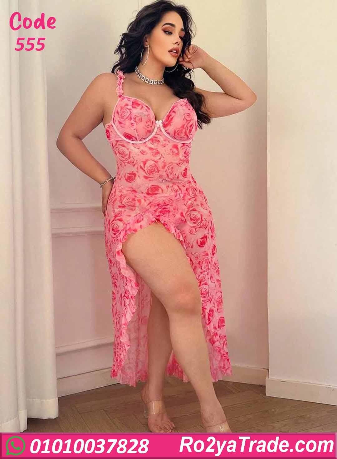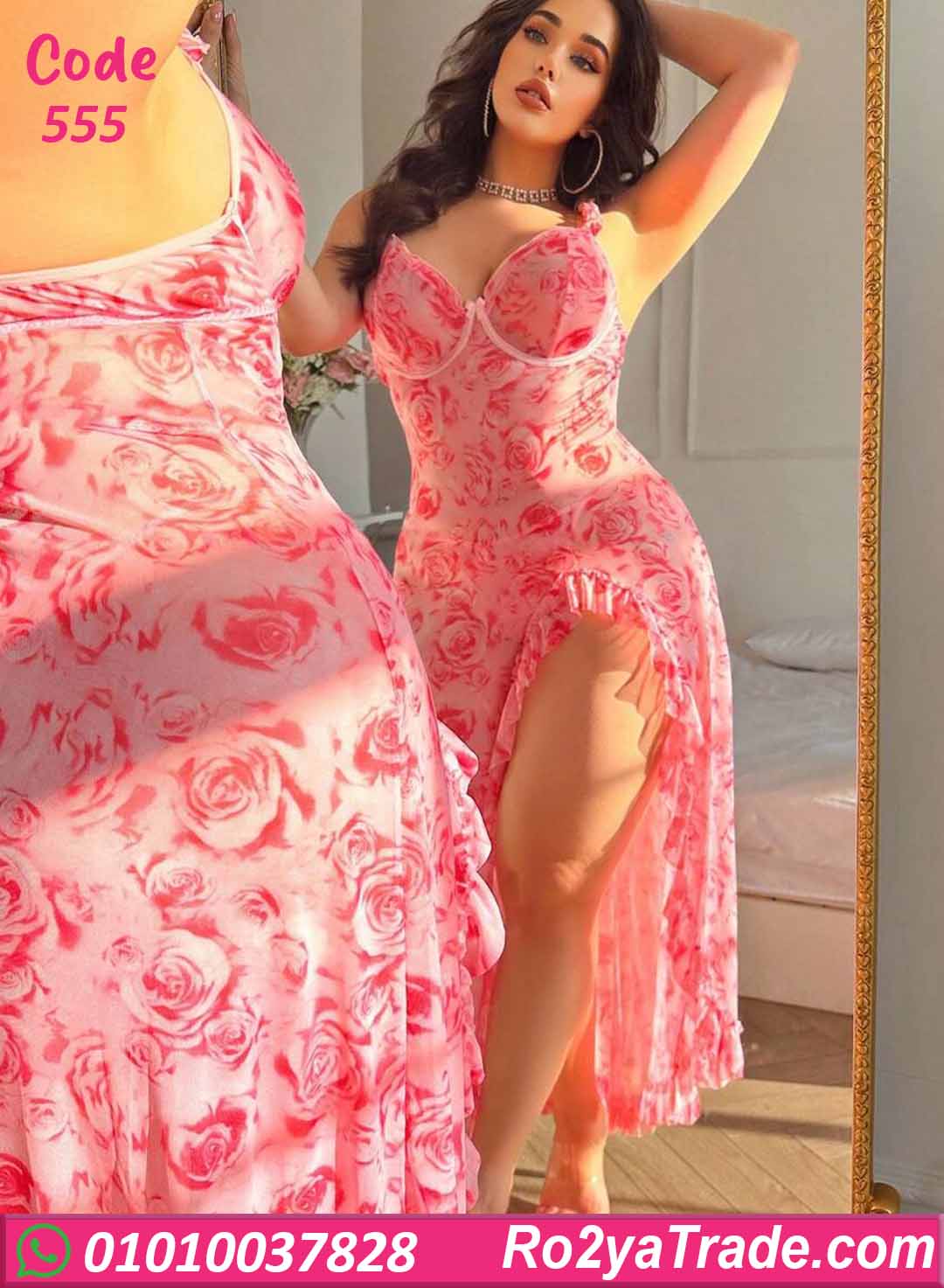 لانجري طويل كود 555 بتصميم أنثوي سكسي بطبعة ورود ناعمة مع فتحة جانبية