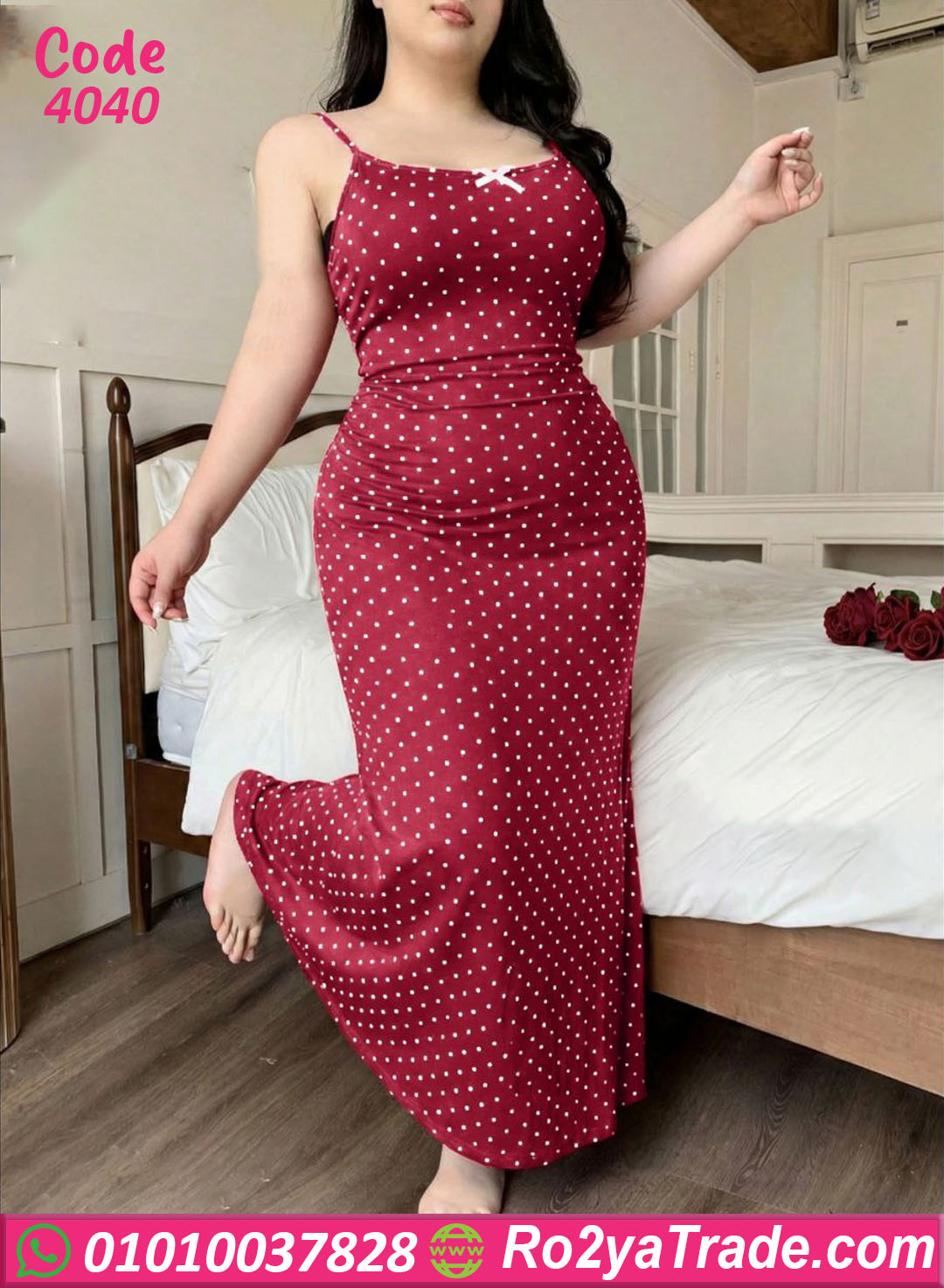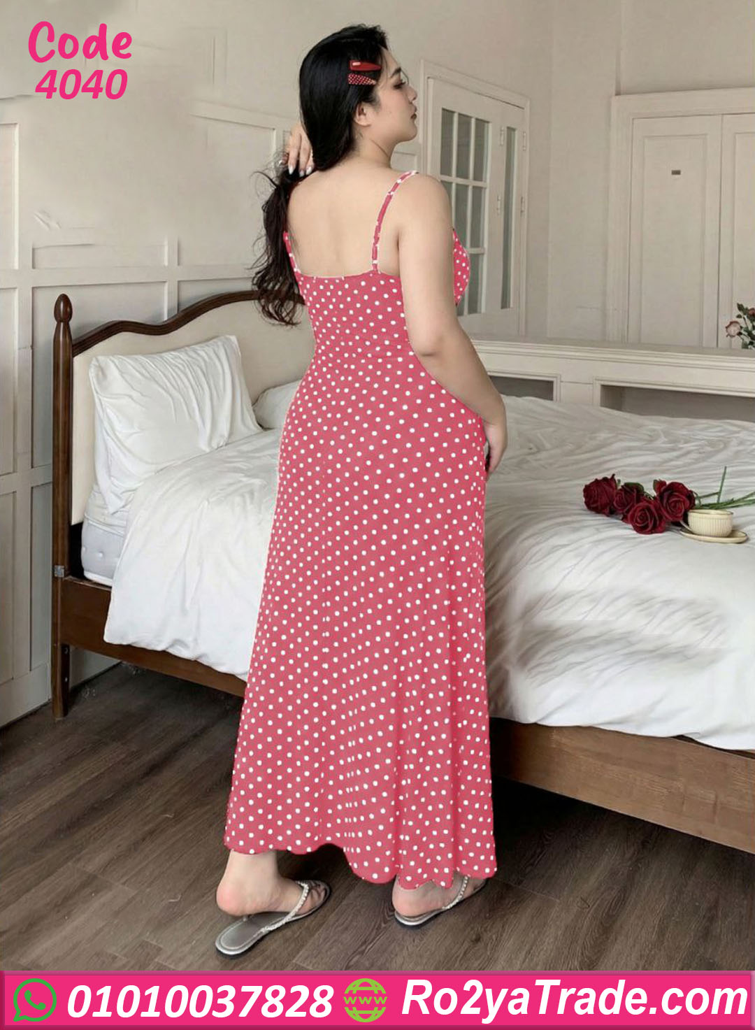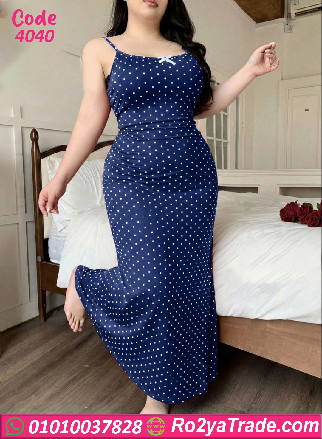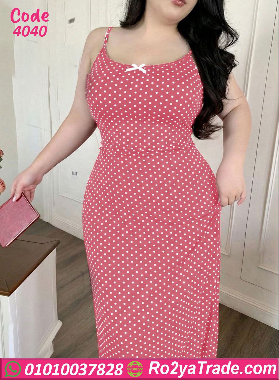 لانجري حريمي طويل بخامة ناعمة ومريحة، تصميم بسيط وشيك بنقشة منقطة بتدي شكل أنيق وجذاب، مناسب للبيج سايز وبيبرز القوام بشكل راقي ومريح في اللبس اليومي أو الليلي.