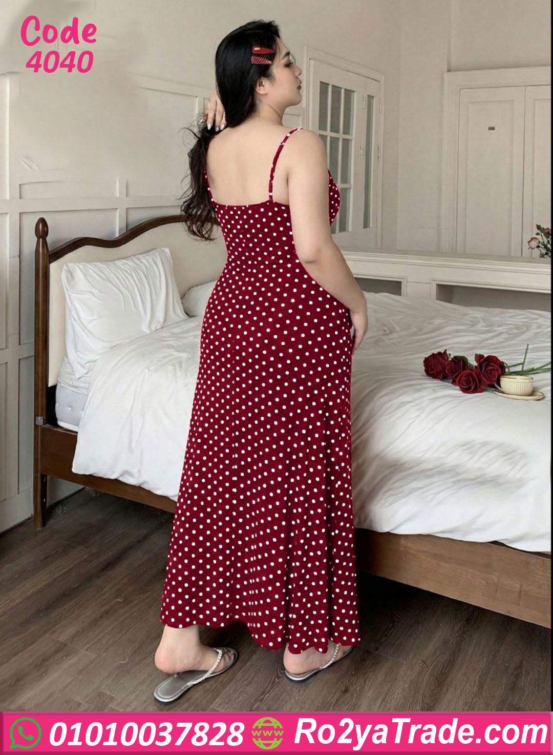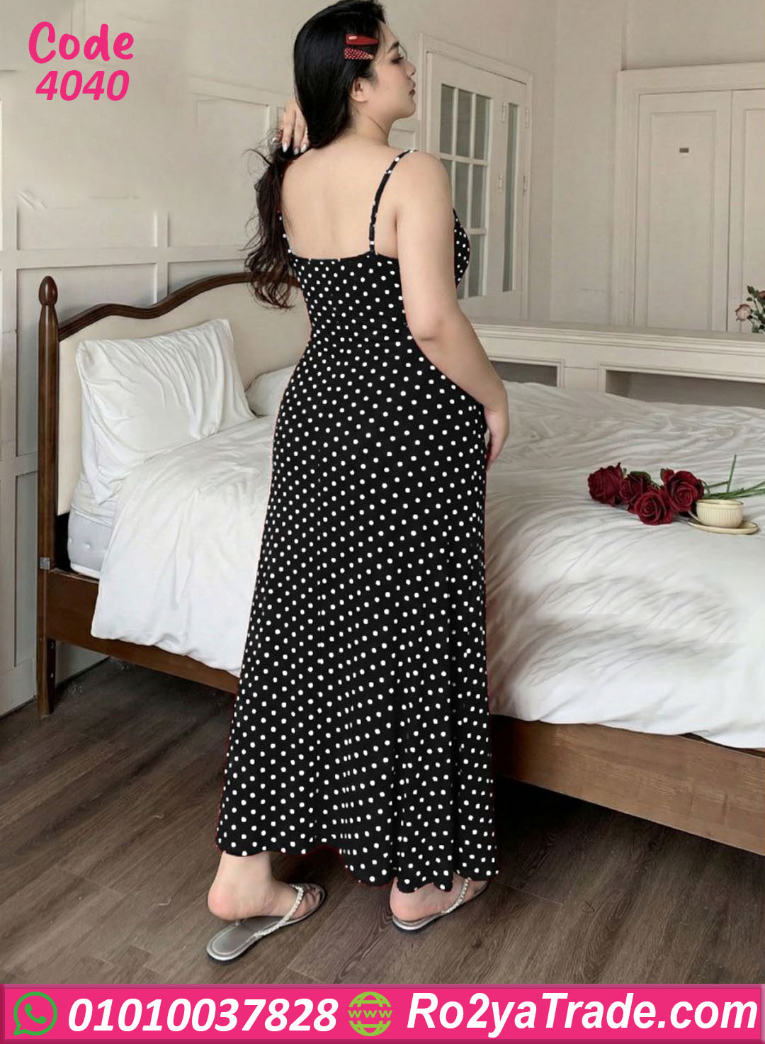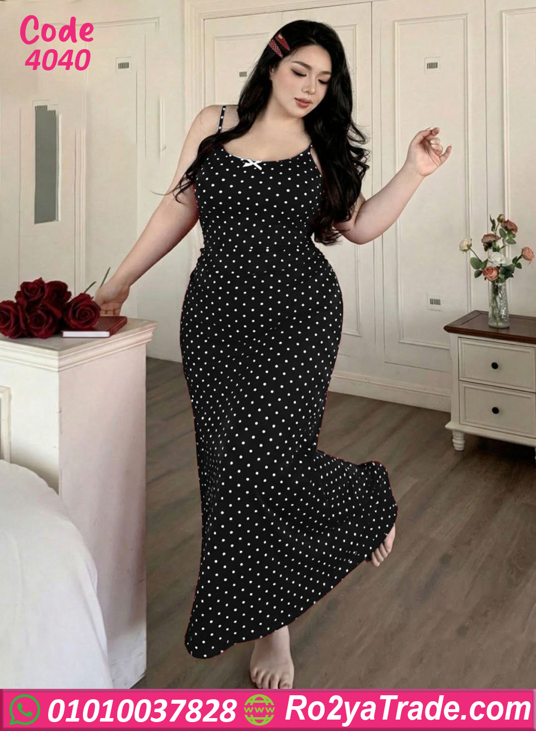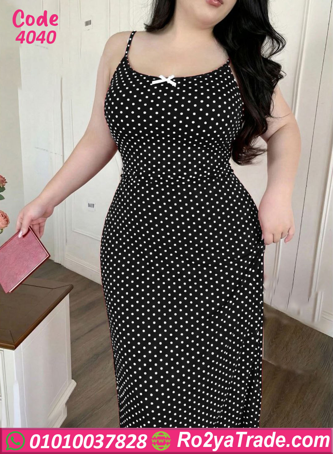 لانجري حريمي طويل بخامة ناعمة ومريحة، تصميم بسيط وشيك بنقشة منقطة بتدي شكل أنيق وجذاب، مناسب للبيج سايز وبيبرز القوام بشكل راقي ومريح في اللبس اليومي أو الليلي.