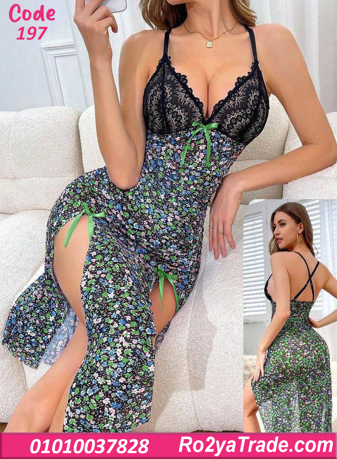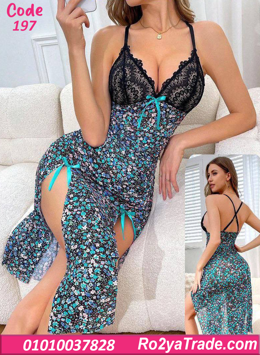 لو بتدوري على لانجري يجمع بين الأناقة والرومانسية، موديل لانجري طويل ورد بدانتيل – كود 197 هيكون اختيار مثالي لإطلالة أنثوية جذابة.
