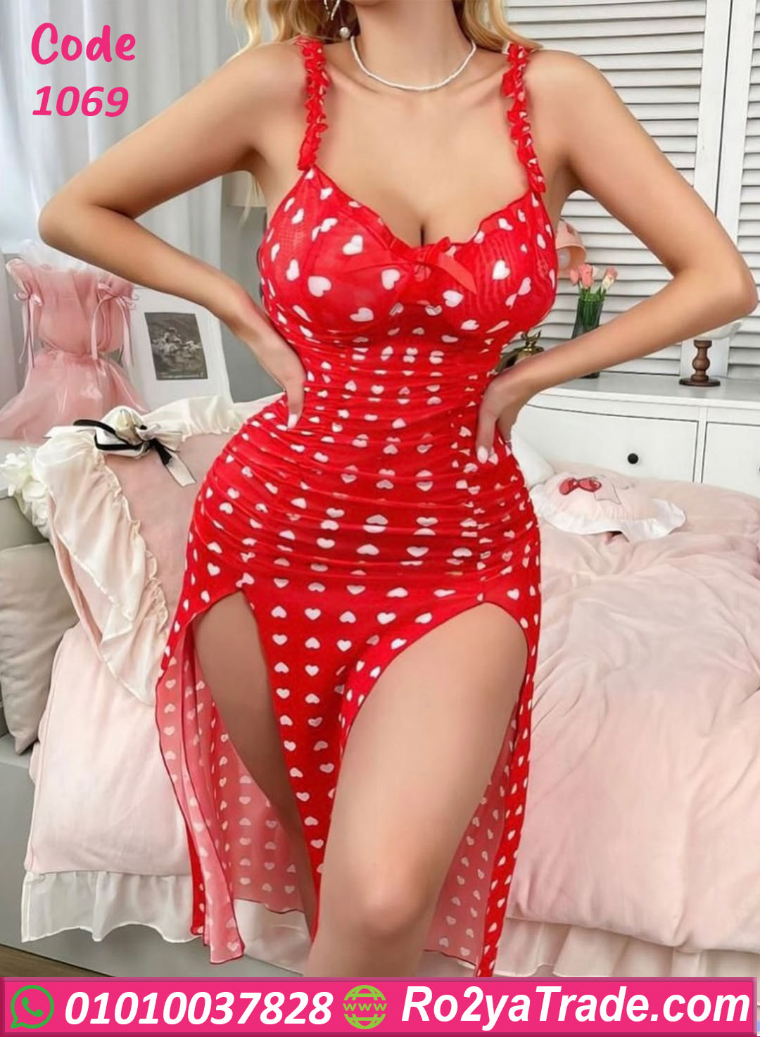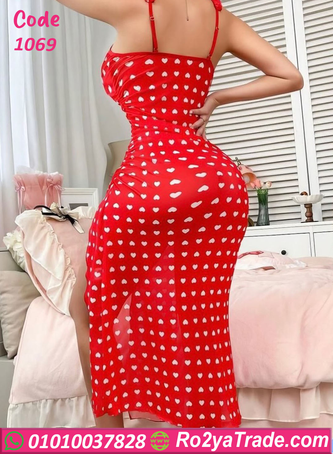 لانجري طويل خفيف بخامة مرنة بتبرز شكل الجسم بنعومة، وطباعة قلوب رومانسية تضيف جاذبية للوك بكل بساطة. تصميم بفتحات جانبية شيك وحمالات رقيقة مناسبة للبيت والمناسبات الخاصة. مريح في اللبس ومثالي كهدية رقيقة. كود 1069.