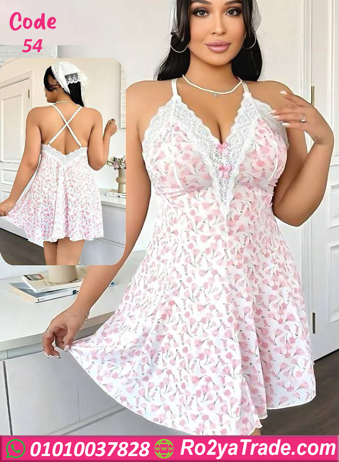لانجري قصير بناتي بخامة ناعمة خفيفة على الجسم بتديكي راحة وأناقة في نفس الوقت 💖. الديزاين مزوّد بدانتيل رقيق Around الصدر مع حمالات متقاطعة من الظهر بتدي شكل أنثوي فخم ومثير. الموديل واسع من تحت فبيظهر خصر رفيع وجسم ممشوق، ومثالي للسهرات الرومانسية والمناسبات اللي عايزة تظهري فيها بأحلى لوك ✨. مناسب للبس في البيت وفي الجلسات الخاصة، ومقاسه وان سايز يناسب من 60 لـ 80 كجم – كود 54.