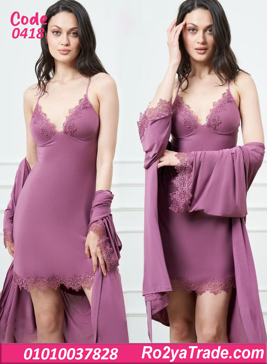 لانجري قصير دانتيل مع روب – كود 0418