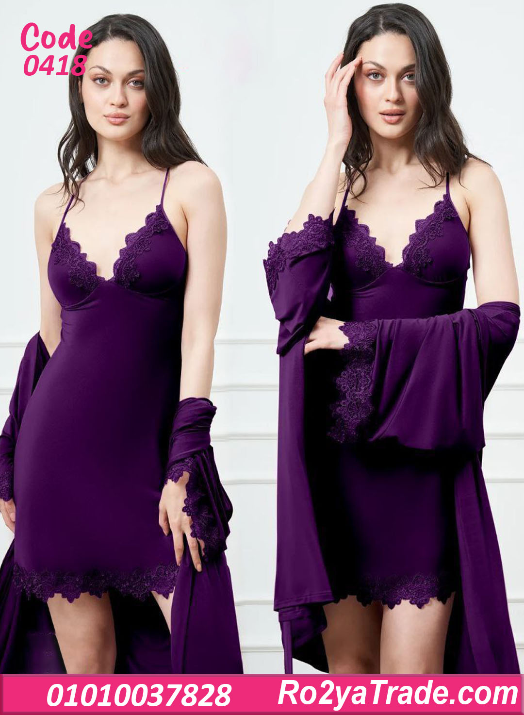 لانجري قصير كود 0418 من ماركة La Rose، طقم مميز مكون من قطعتين بتصميم أنثوي جذاب ولون فخم يخطف العين.