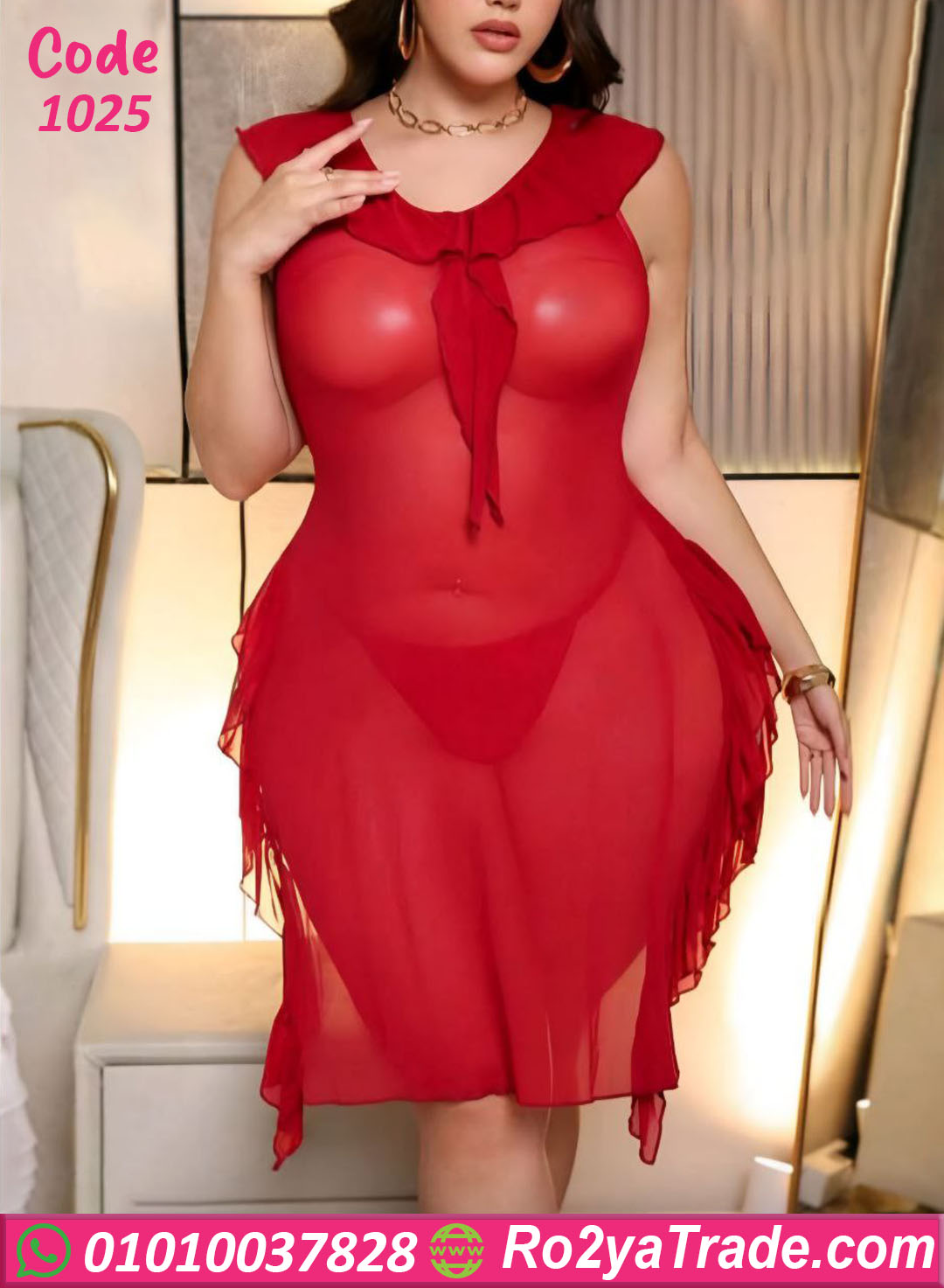 لانجري حريمي قصير بخامة شيفون ناعمة وشفافة، تصميم أنثوي جذاب بقصّة مريحة ولمسة ناعمة عند الصدر، مناسب للبيج سايز ويدي شكل شيك ومثير.