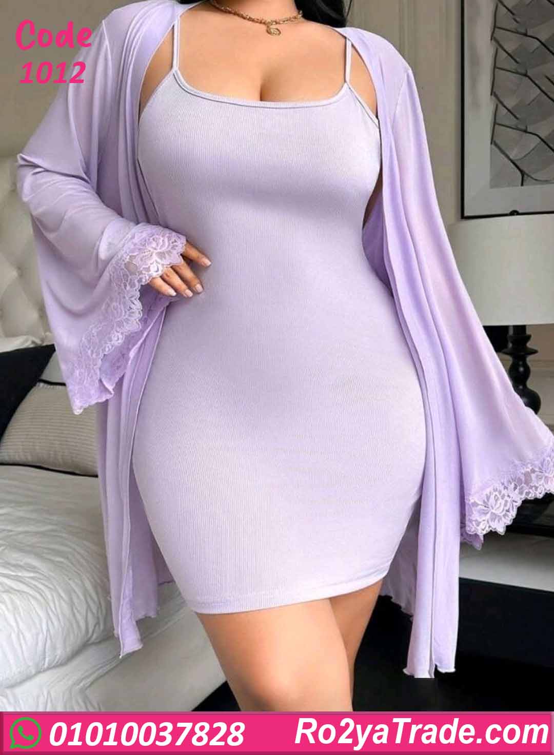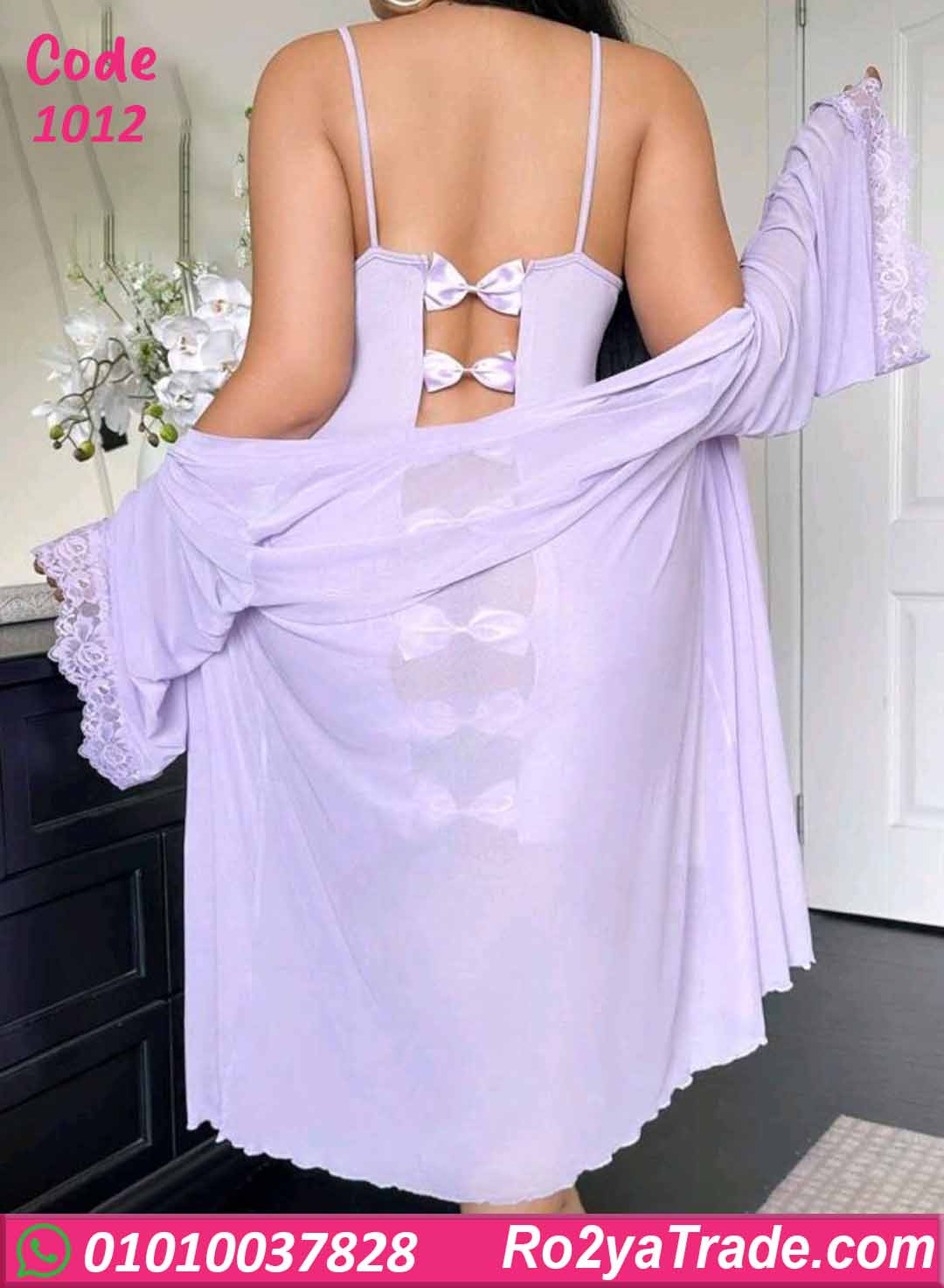 لانجري حريمي سكسي بتصميم أنيق بخامة ناعمة ومطاطة على الجسم، بيبرز القوام بشكل جذاب وشيك، ومعاه روب خفيف بنفس اللون يدي لمسة فخامة وأناقة، مناسب للعرايس والليالي الخاصة.