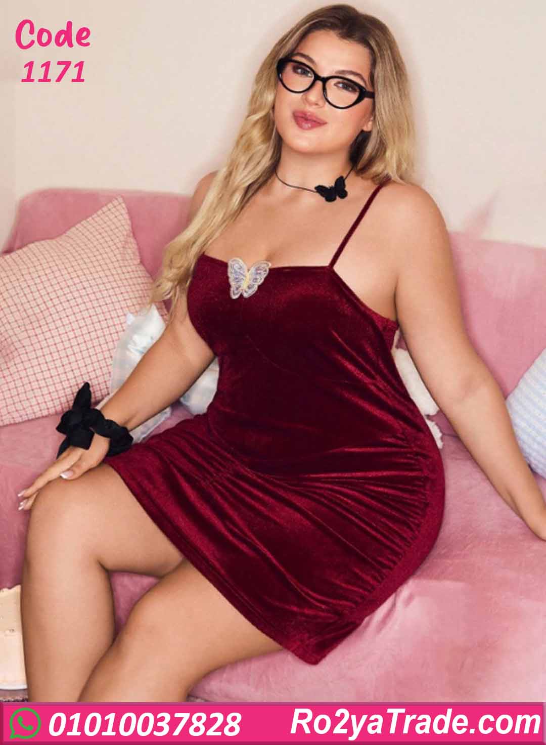 لانجري قصير مصنوع من خامة قطيفة ناعمة على الجسم، بتدي إحساس بالدفا والنعومة مع لمسة فخامة،