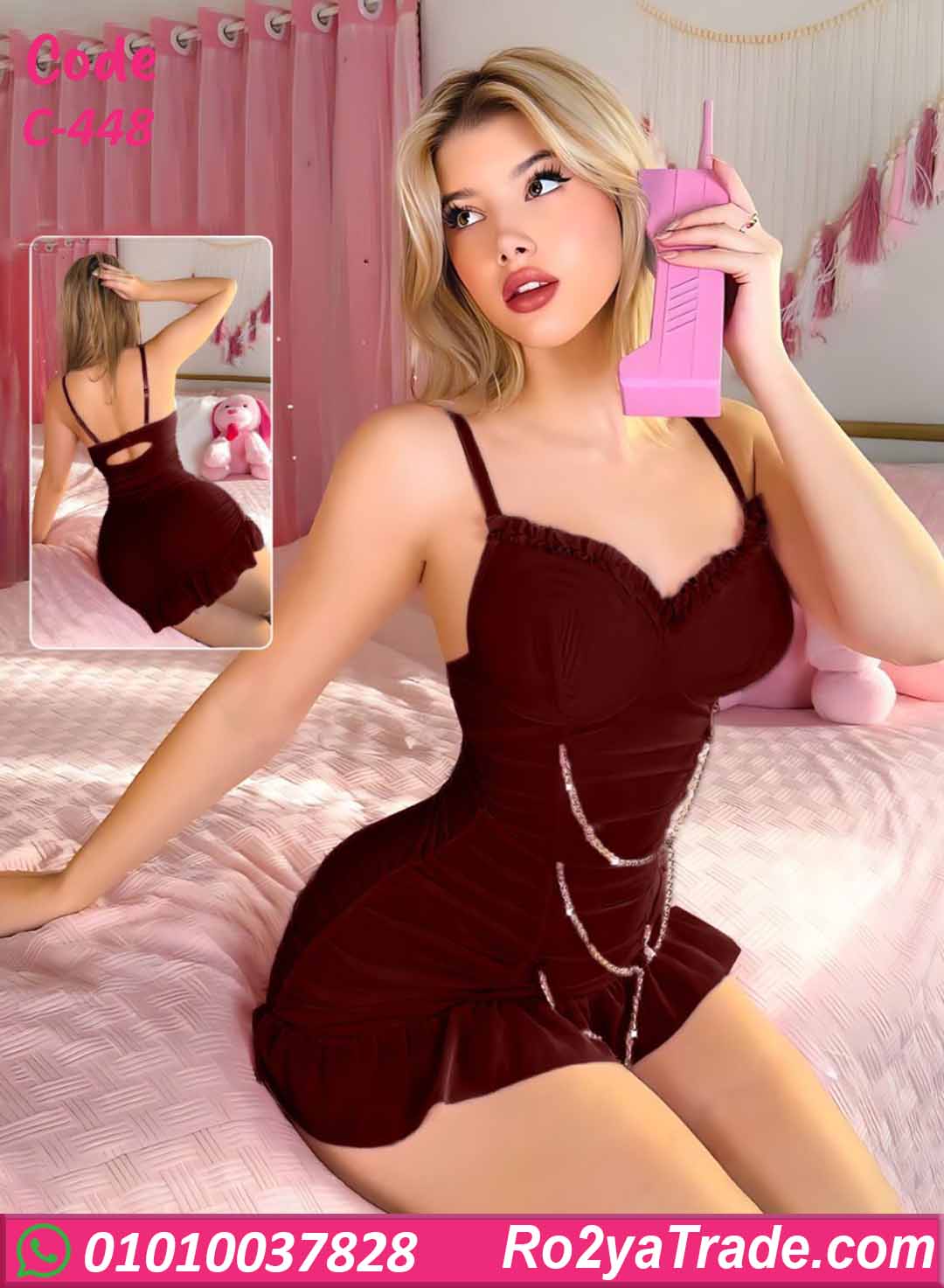 لانجري قصير أنيق بتصميم أنثوي جذاب، بخامة ناعمة على الجسم وتفاصيل شيك بتدي شكل أنيق ومثير في نفس الوقت، مناسب للبيت وللاستخدام اليومي الخفيف.