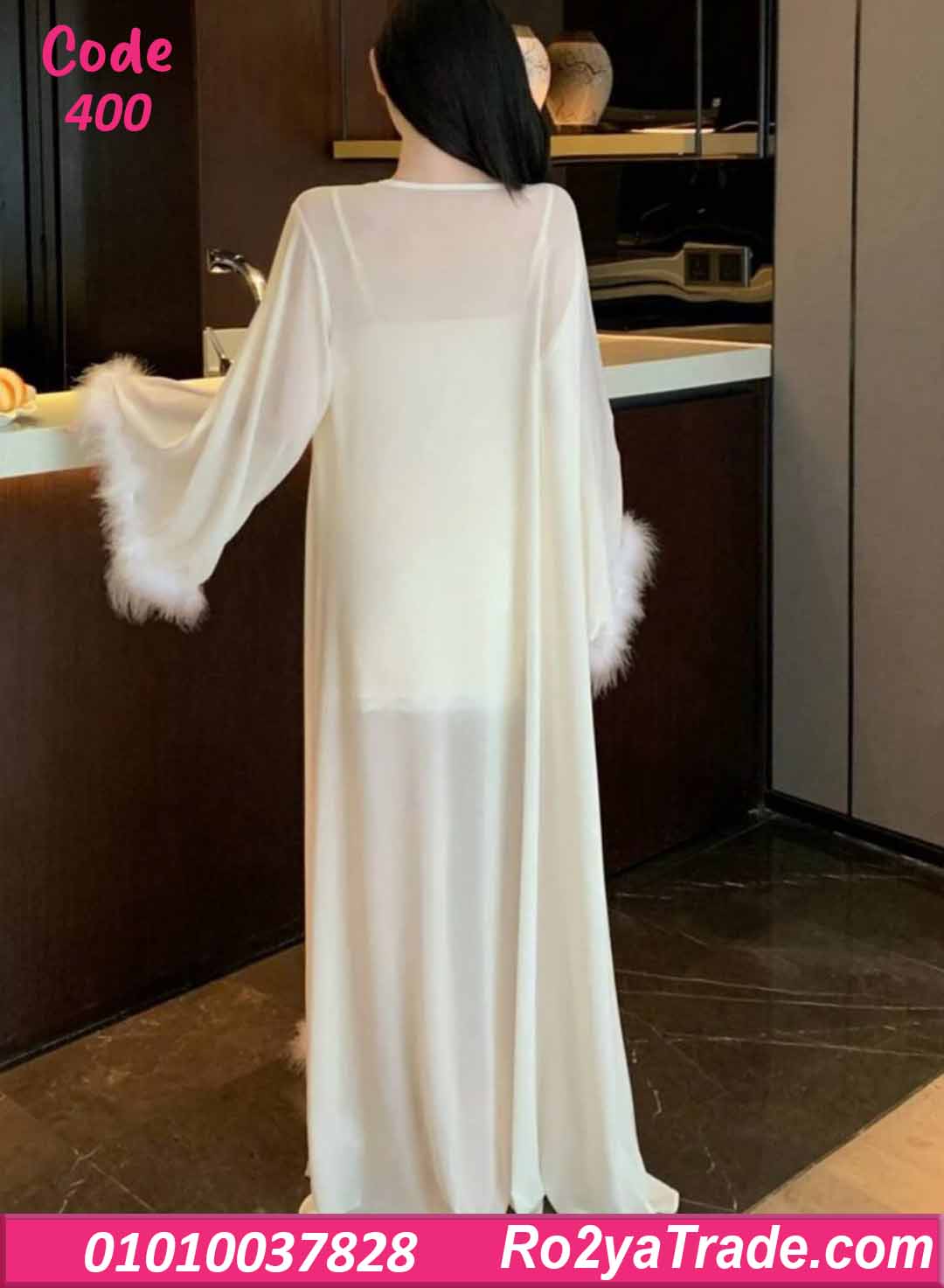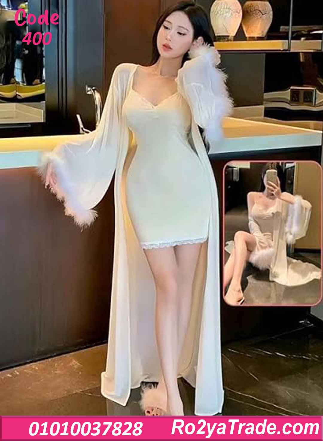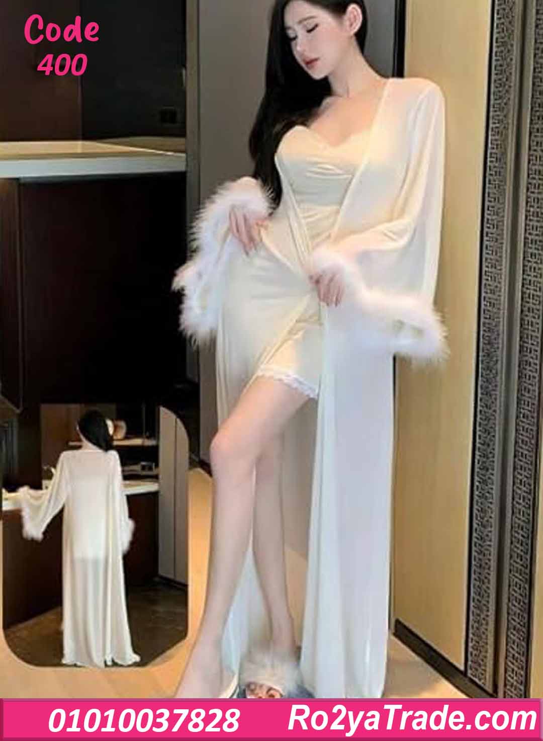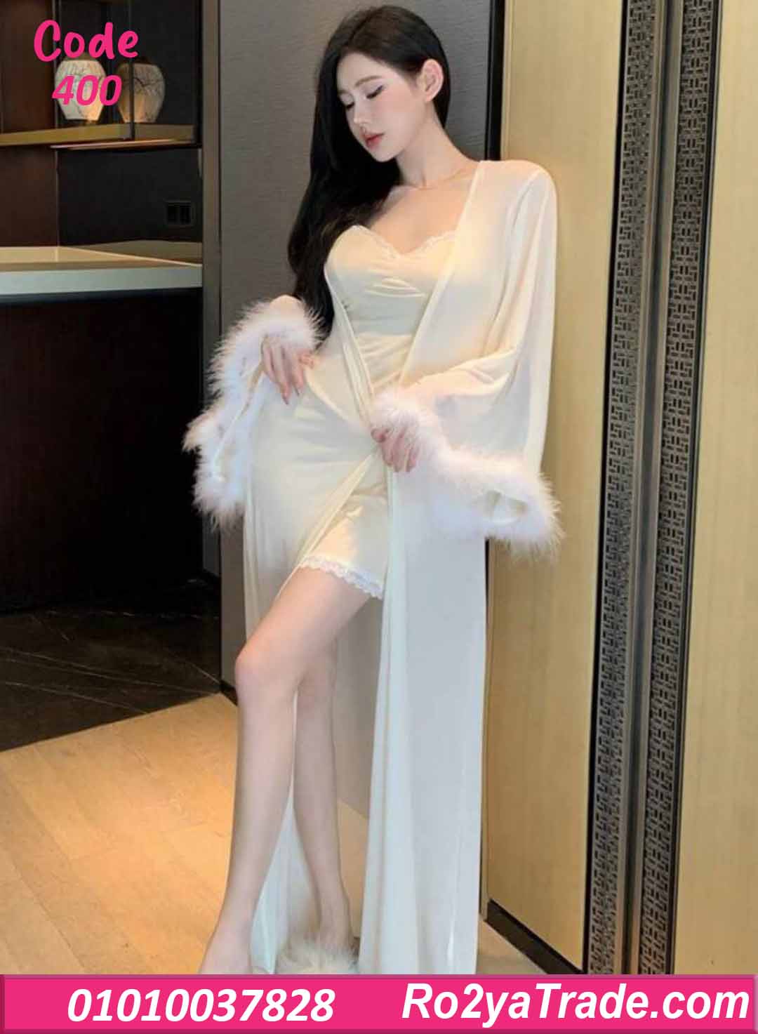 لانجري قصير 2 قطع زبدة مع روب طويل – كود 400
