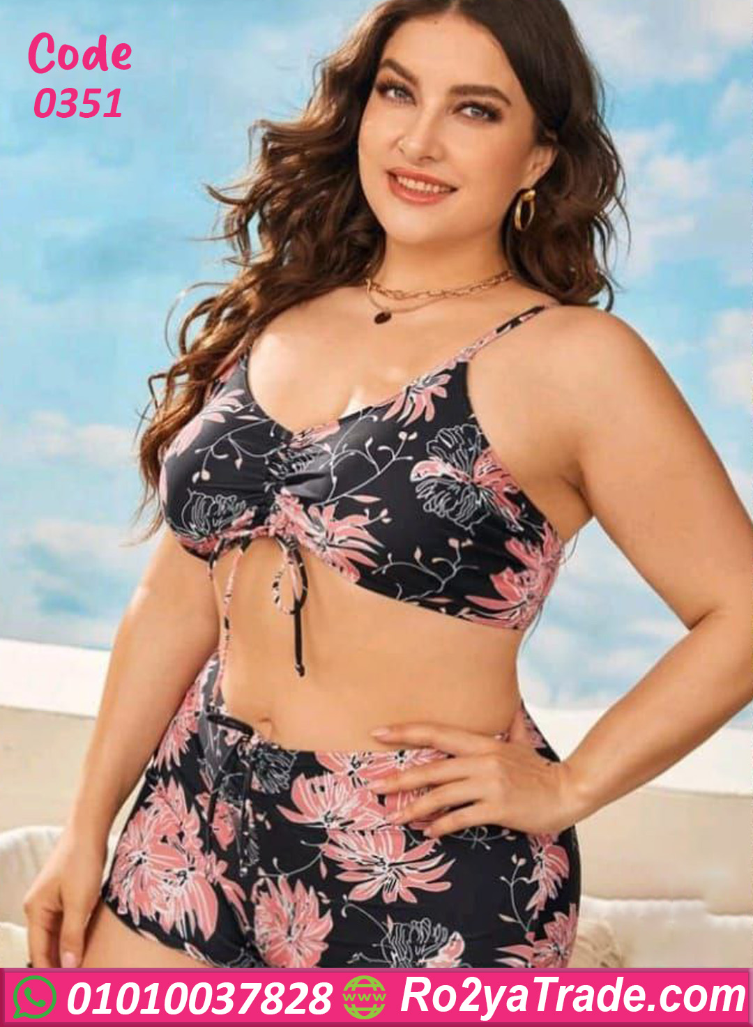 لانجري مثير كود 0351 تصميم قطعتين شيك جدًا، عبارة عن توب بحمالات رفيعة قابلة للتعديل مع شورت قصير مريح، بطبعة ورود وردي على أرضية سودة بتدي شكل أنثوي جذاب ومبهج.
