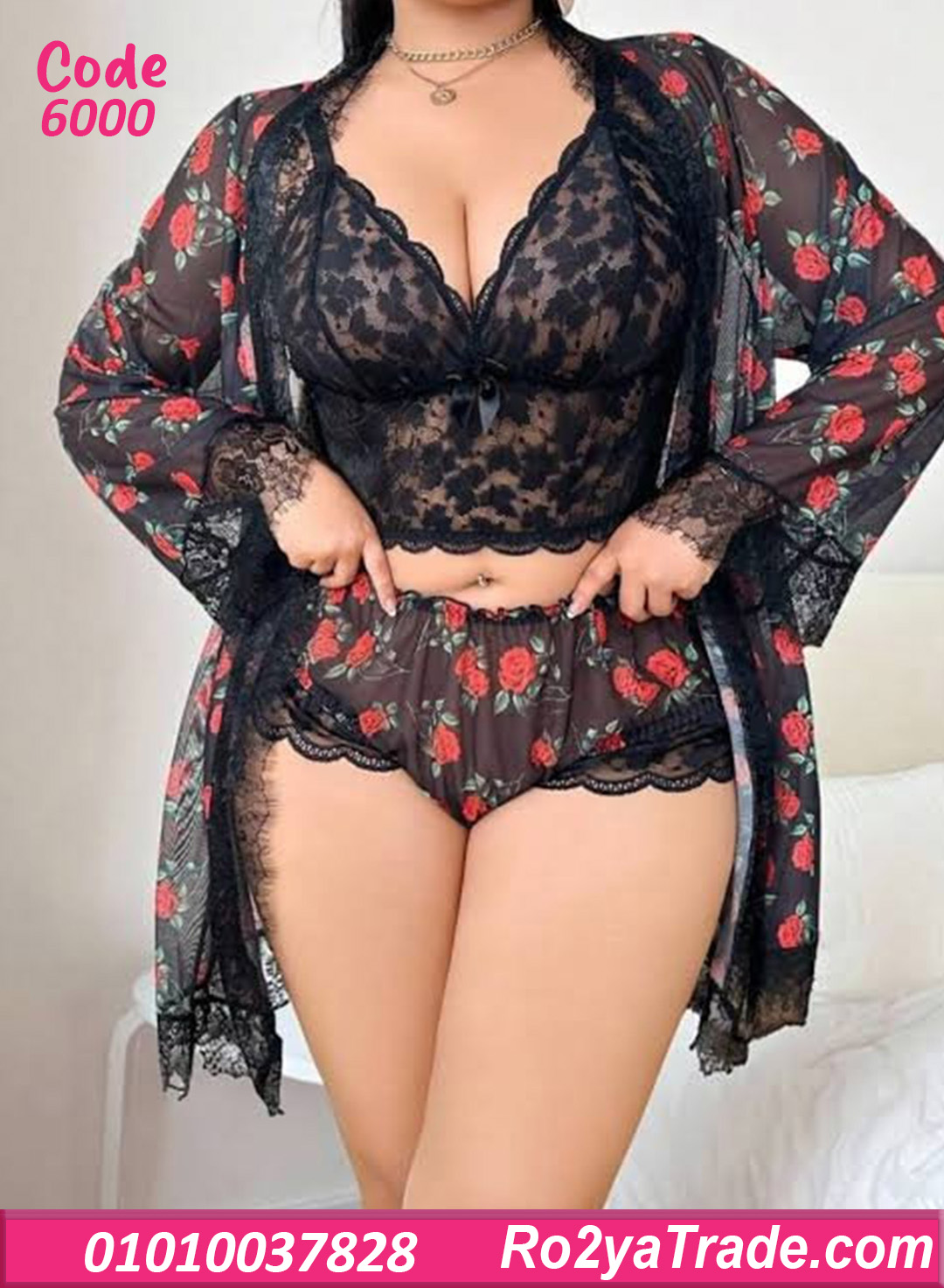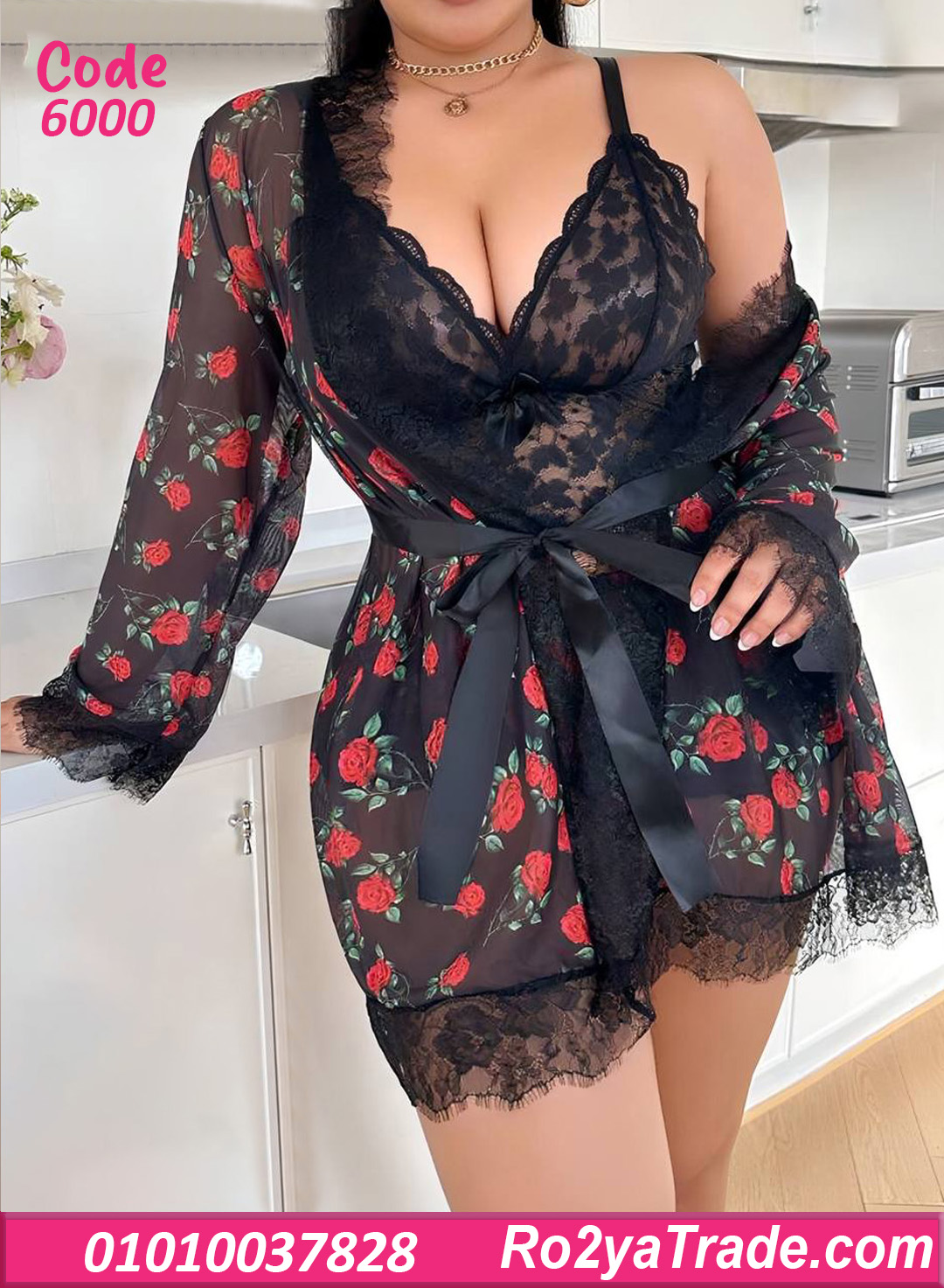 لانجري مثير روب شيفون ورد أحمر 2 قطعة بيج سايز – كود 6000