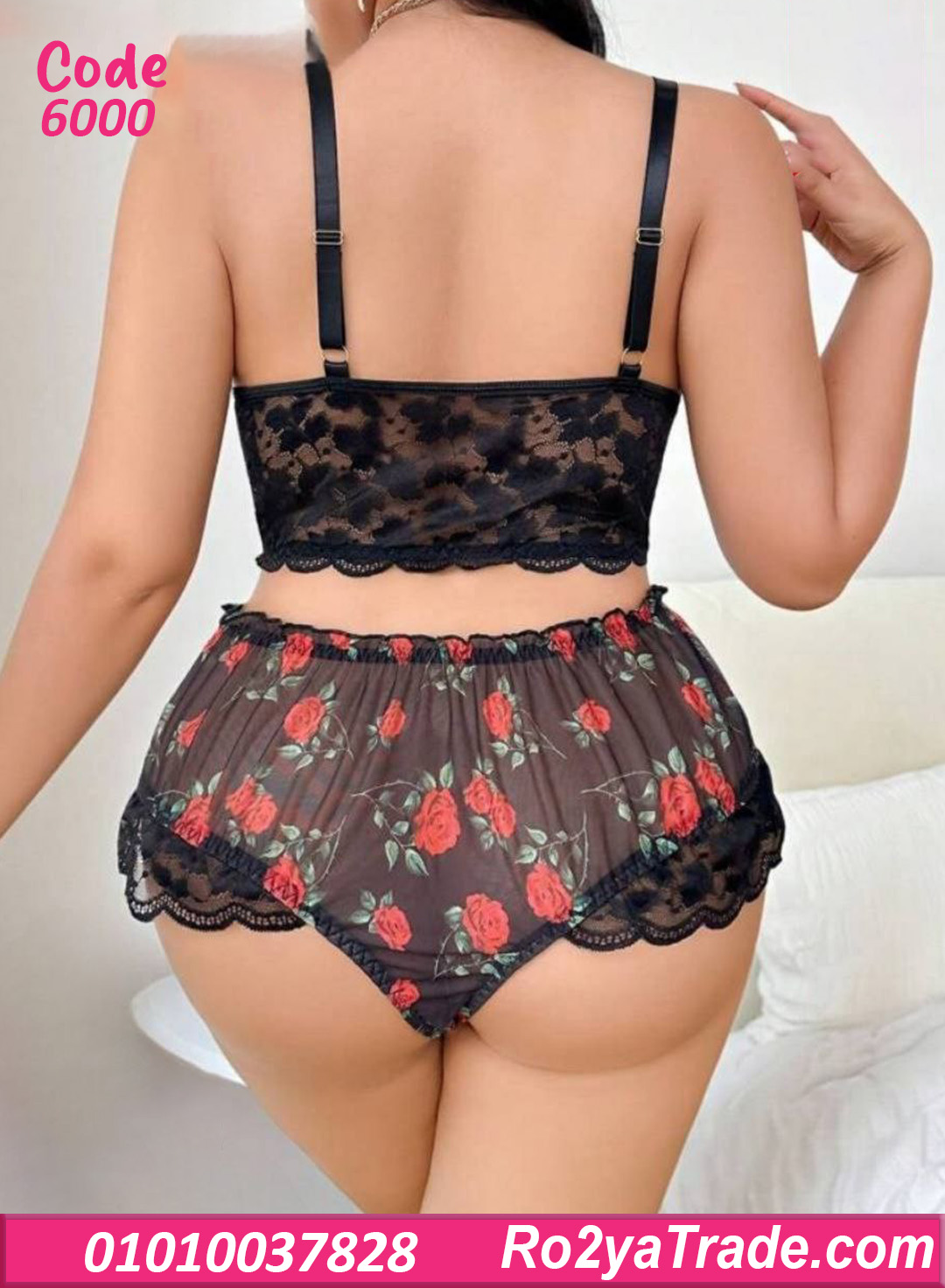 طقم أنثوي شيك يجمع بين الشيفون الشفاف والدانتيل بتفاصيل ناعمة تخلي إطلالتك مختلفة ومميزة جدًا 🌹🖤