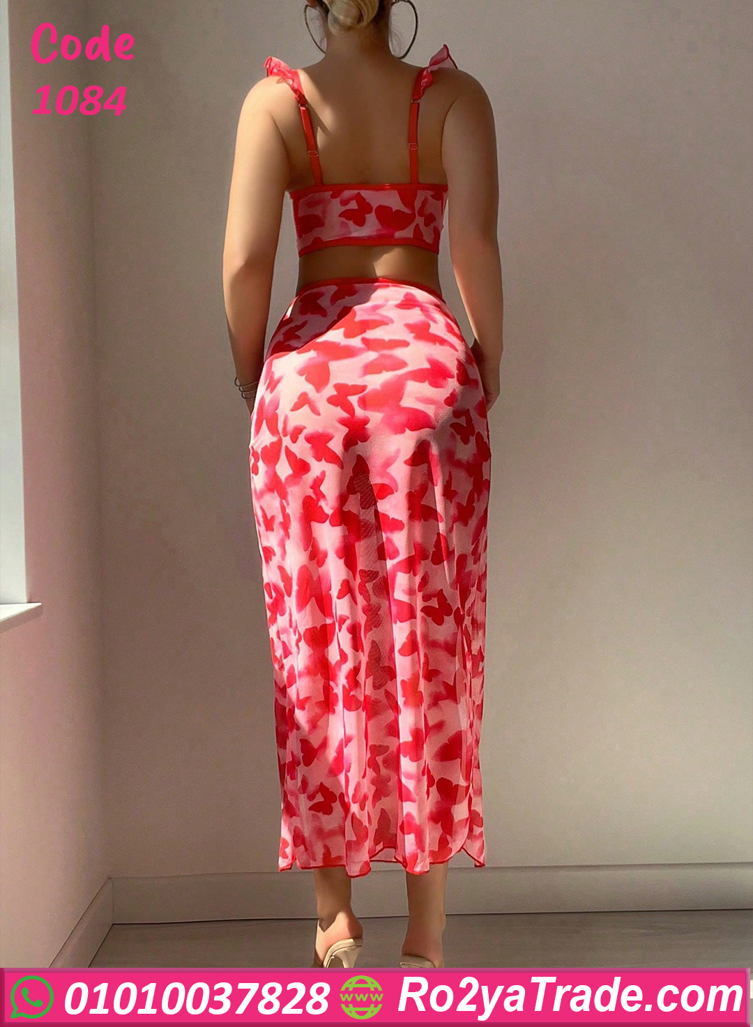 لانجري طويل مثير بخامة مريحة ناعمة على الجسم، تصميم مميز عبارة عن قطعتين: توب قصير بفتحات جذابة وتنورة طويلة بقصّة جانبية تخطف العين، بطبعة قلوب رقيقة تديكي ستايل أنثوي وشكل جسم ممشوق. موديل مثالي للزوجات وللمناسبات الخاصة وشهر العسل. كود 1084.