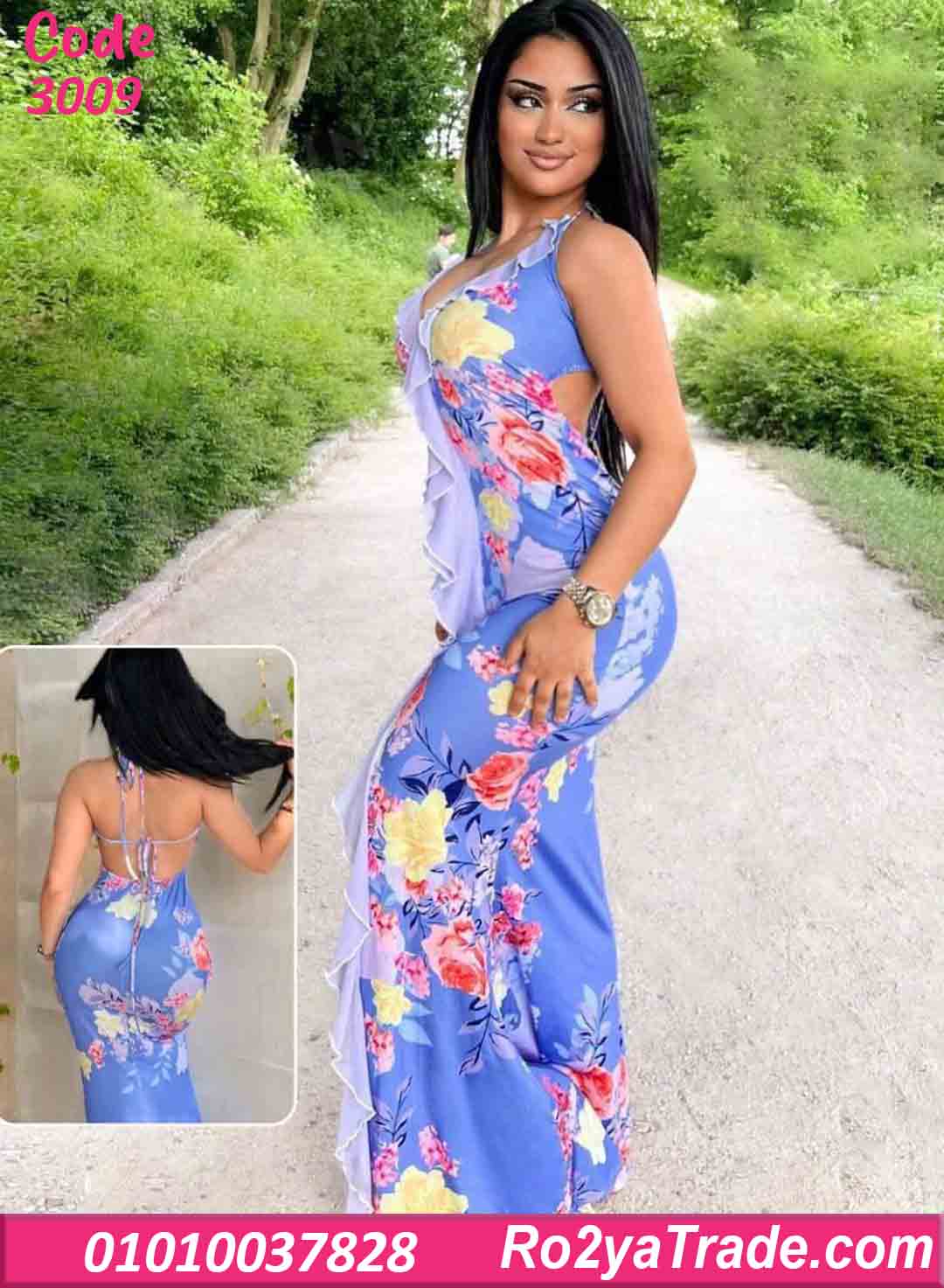 حمالات رفيعة وتصميم ظهر مفتوح يعطي شكل مميز وجذاب. كما يحتوي التصميم على فتحة أمامية طويلة تضيف لمسة