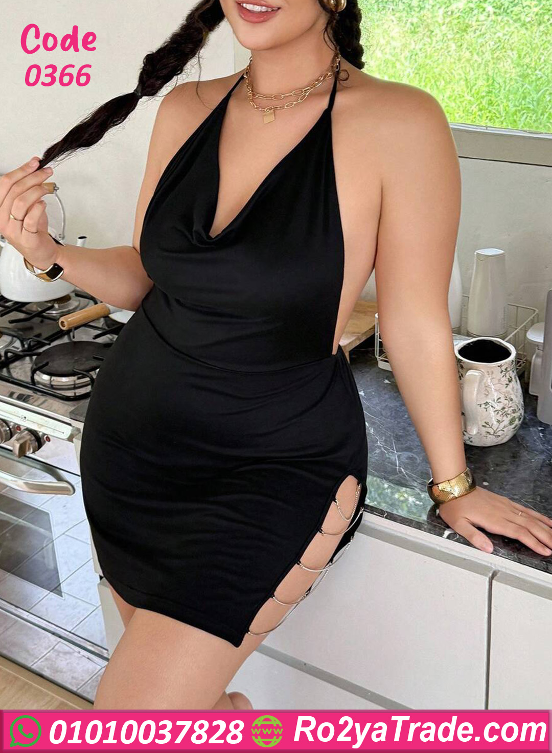 الموديل مناسب جدًا للبيج سايز، بيبرز القوام بطريقة جذابة وبيخليكي واثقة في نفسك. لو عايزة لانجيري مثير بيج سايز بظهر مفتوح ولمسة سلاسل مختلفة، موديل 0366 من ماركة GOLDEN اختيار قوي جدًا ليكي.