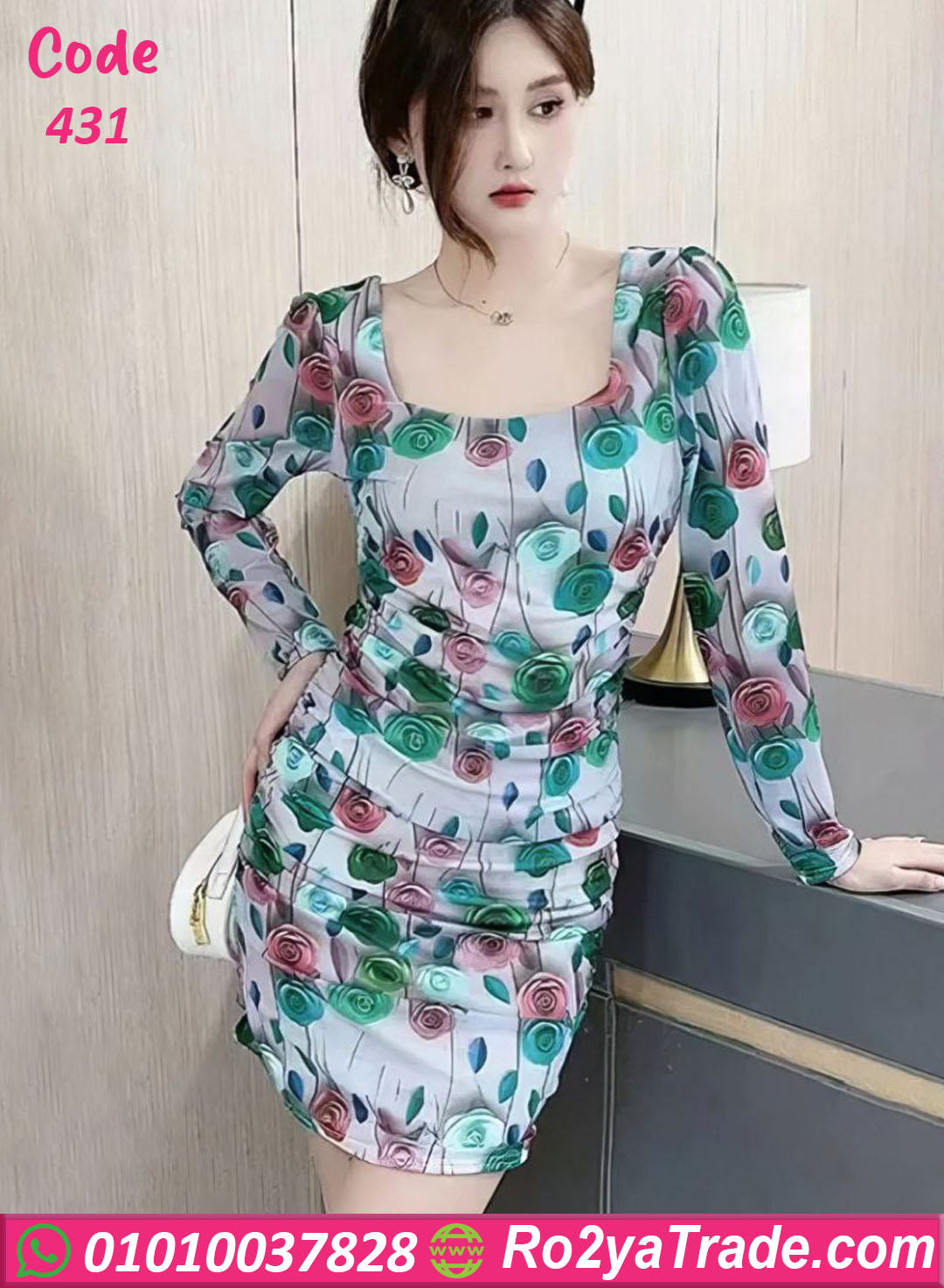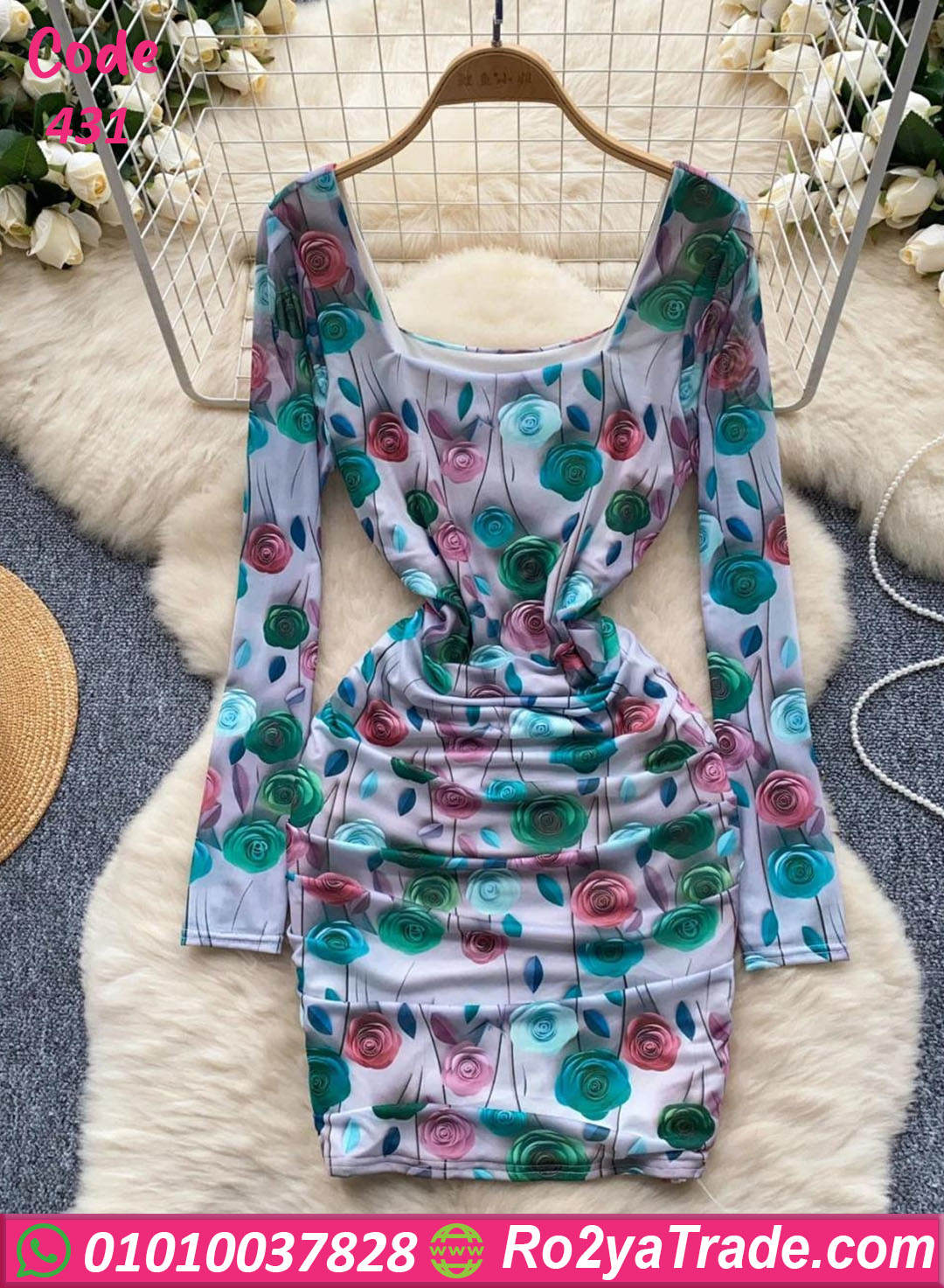 التصميم القصير بقصة ضيقة بيبرز القوام بشكل جذّاب، ونقشة الورود الملونة بتدي طابع صيفي مليان حياة وشياكة 🌸