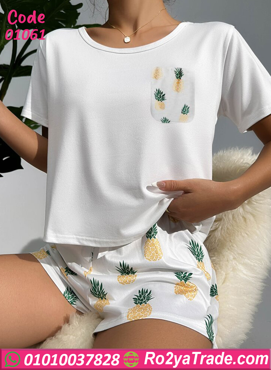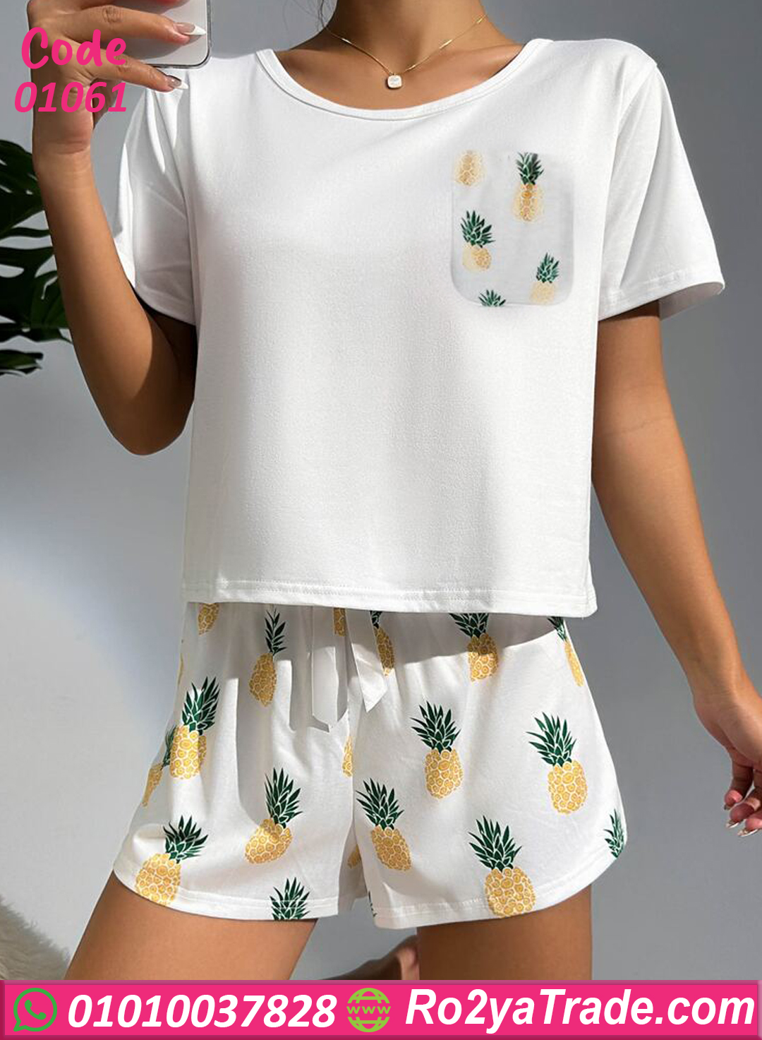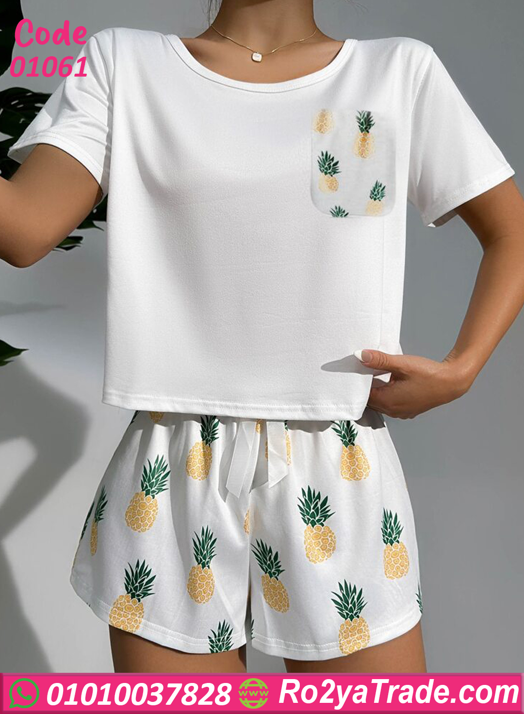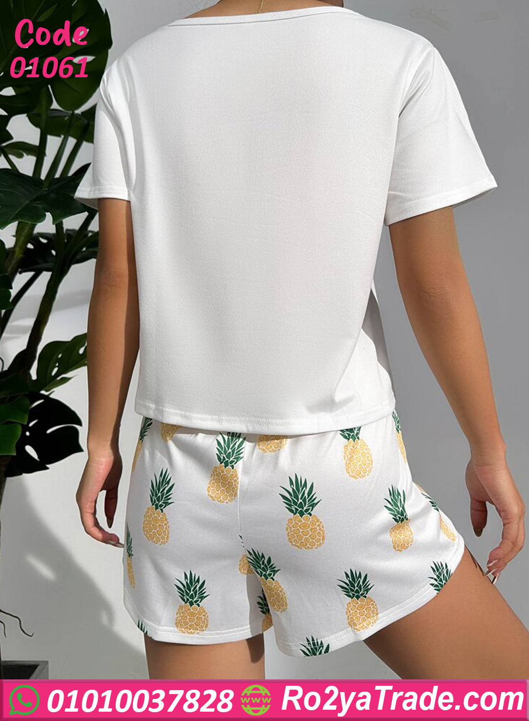 طقم هوت شورت قطن خفيف بطباعة أناناس لطيفة ومناسبة للصيف