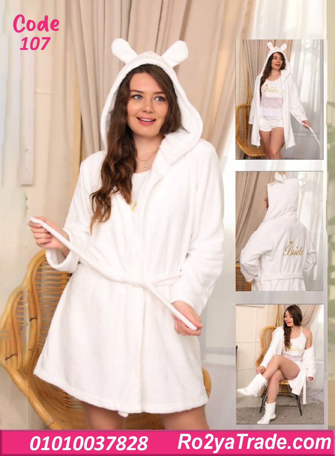 ومعاه روب شتوي دافي بقبعة مميزة، تصميم عملي وسهل اللبس، خامة لطيفة على الجسم ومناسبة للاستخدام اليومي أو كطقم عرايس.
