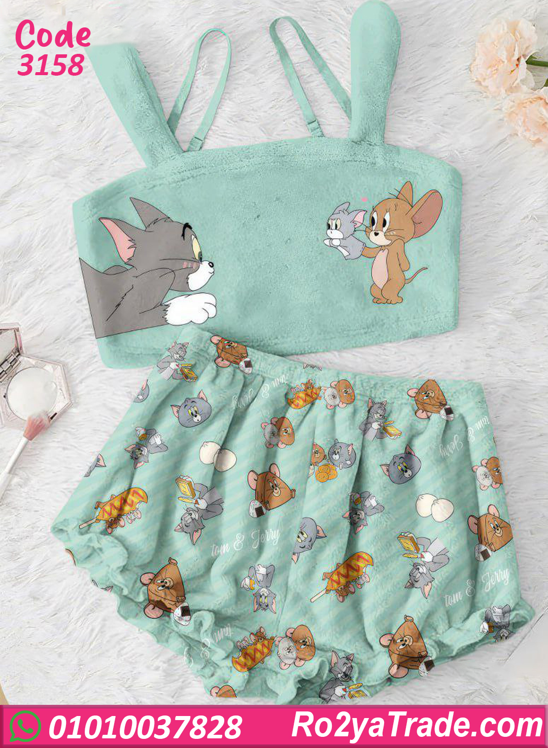 التصميم مكوّن من توب كت برسومات توم وجيري لطيفة مع هوت شورت مريح بنفس الطابع المرح، بيدي شكل جذاب ومبهج.