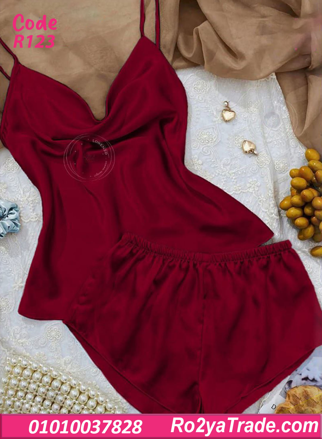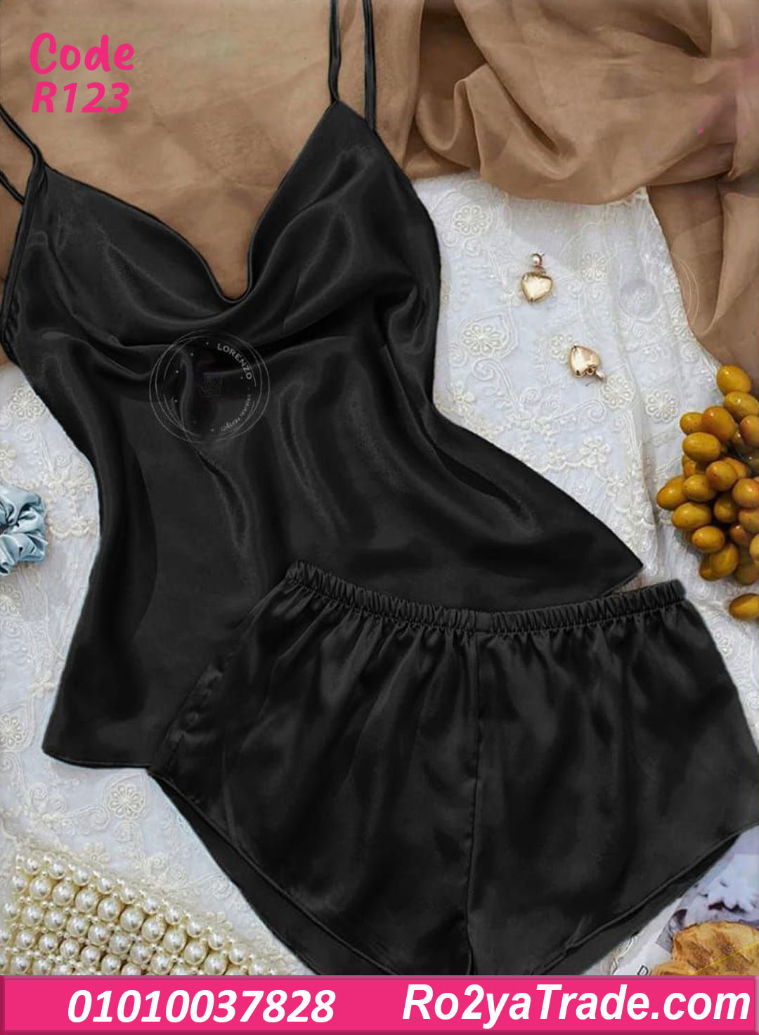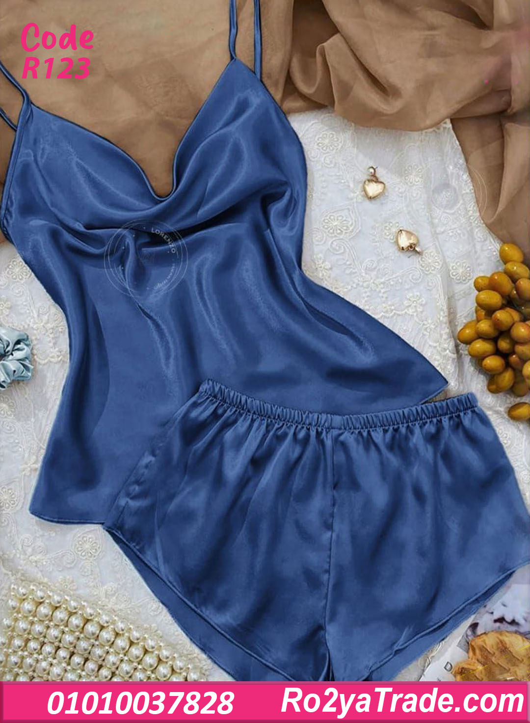 طقم كود R123 مكون من: ✔️ توب بحمالات رفيعة بقصة صدر انسيابية (ستايل كاول) بتدي شكل ناعم وأنثوي. ✔️ شورت قصير بوسط مطاطي مريح على الجسم.