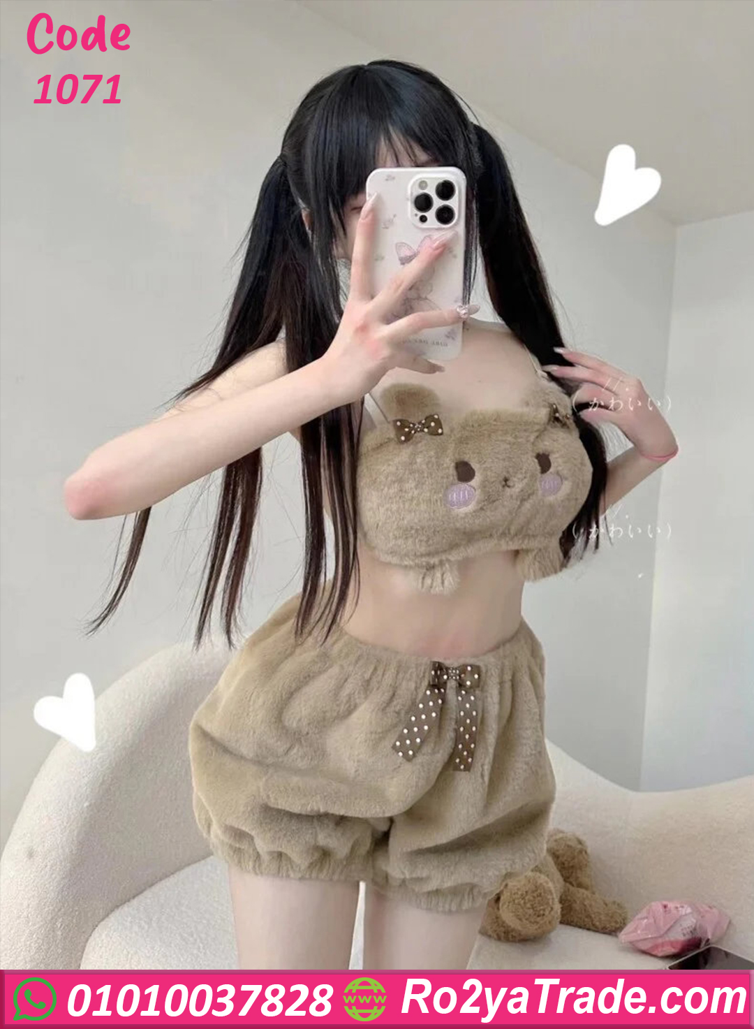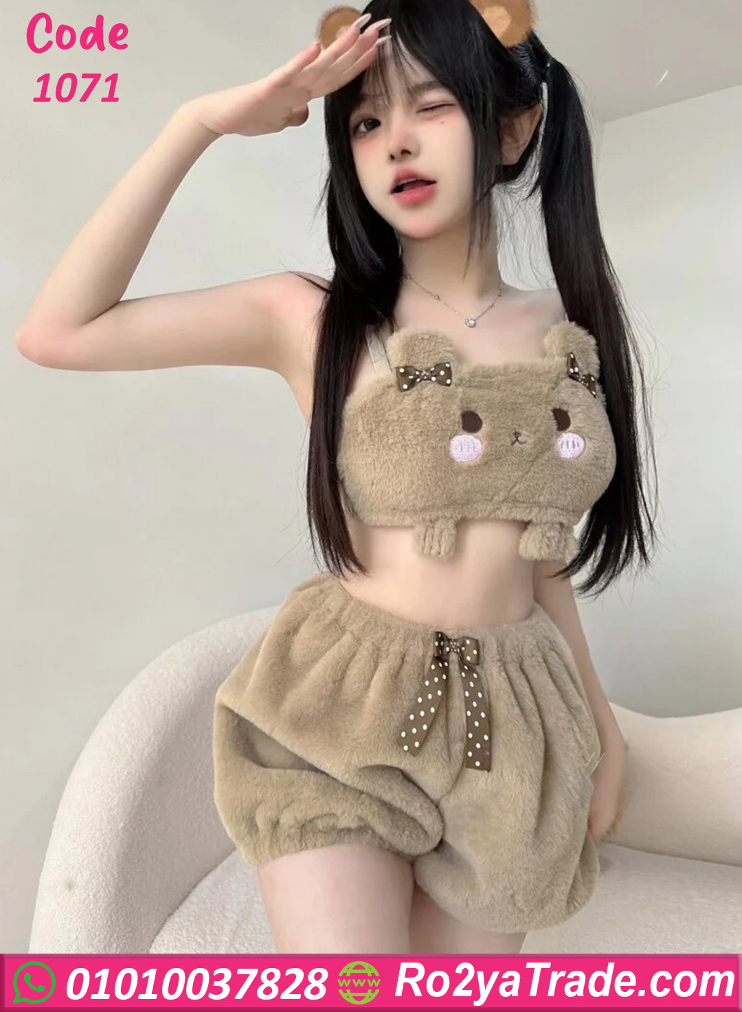 لو بتحبي الستايل البناتي الكيوت اللي بيديكي شكل مختلف ولذيذ في البيت، موديل 1071 هيبقى من القطع اللي هتخطف قلبك. الطقم معمول من خامة فرو ناعمة خفيفة ودافية، ومريحة جدًا على الجلد.