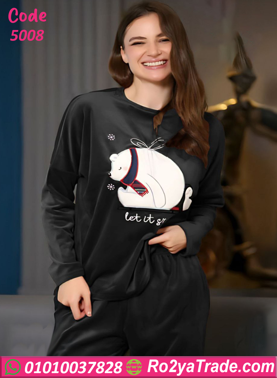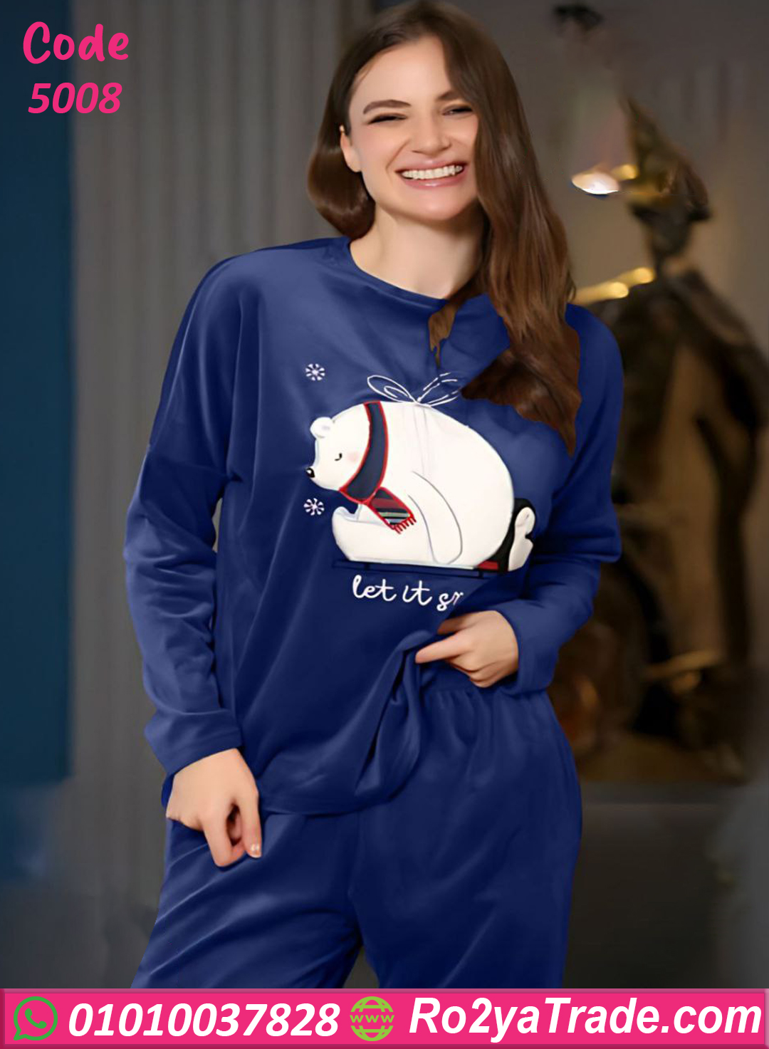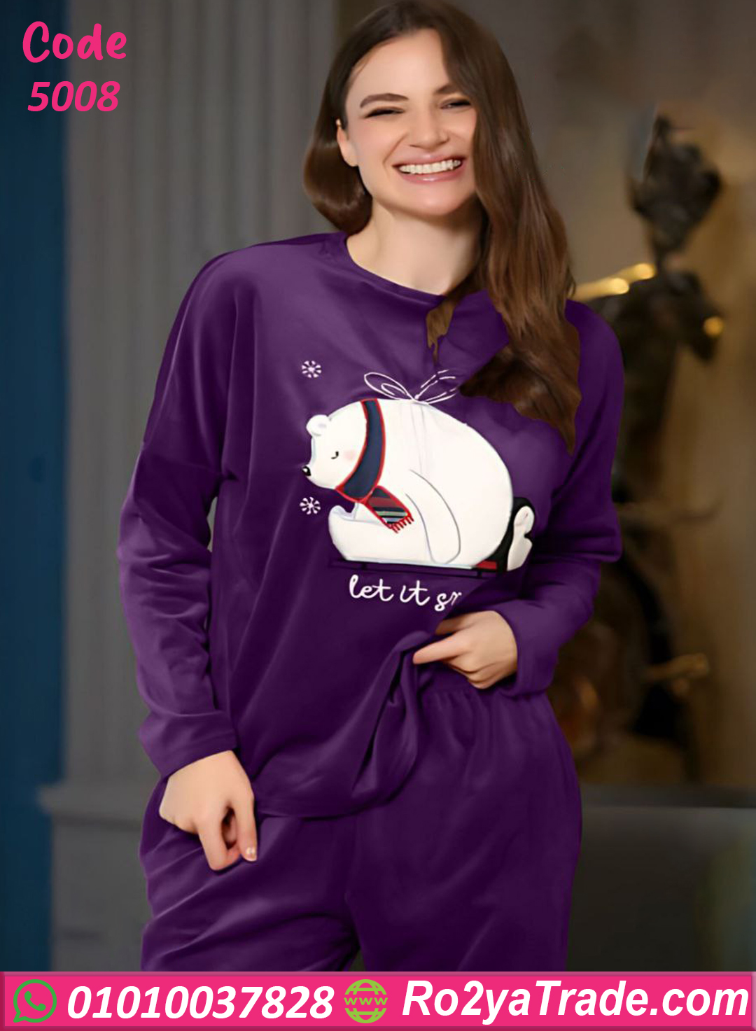 بيجامة شتوي نسائي قطيفة مطبوعة – كود 5008